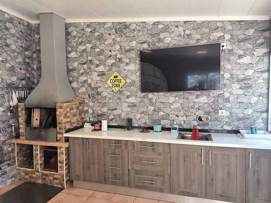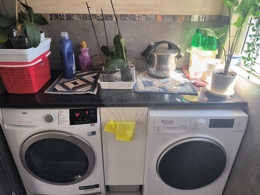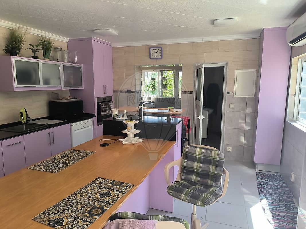 A cozinha principal é grande, moderna e totalmente equipada, com placa de indução, forno, máquina de lavar loiça, exaustor potente, frigorífico americano de duas portas, máquina de lavar roupa e máquina de secar. A casa dispõe também de uma segunda cozinha/churrasqueira totalmente fechada em vidro — perfeita para convívios em qualquer estação do ano.