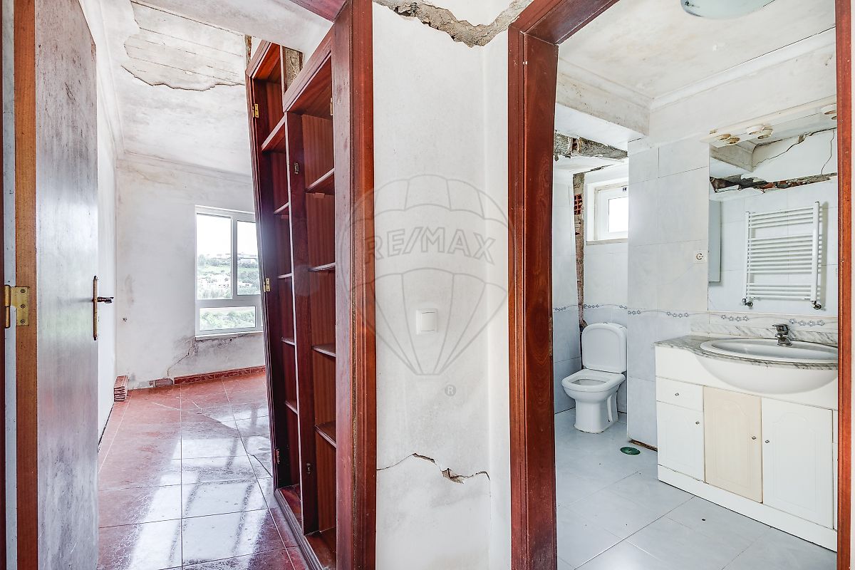 - Parte do imóvel apresenta cedência estrutural (pavimento e paredes), carecendo de intervenção profunda, podendo implicar reconstrução parcial, na zona dos quartos.