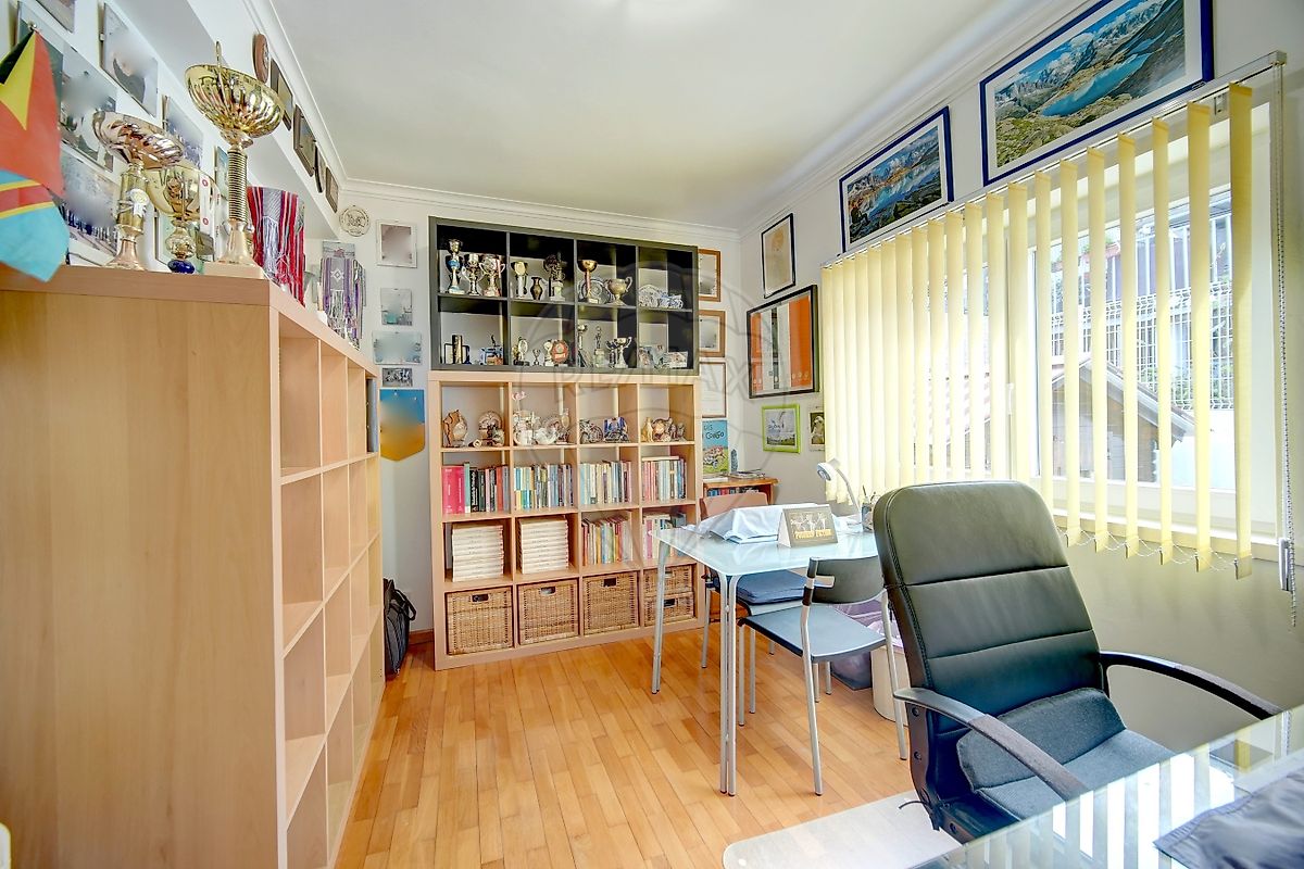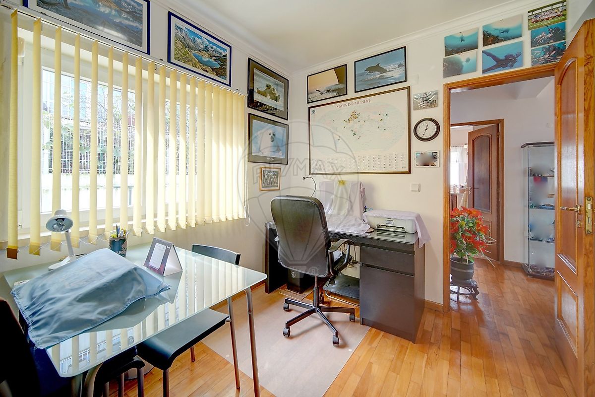 No 1º andar existem 3 quartos, dois com roupeiro, uma casa de banho com banheira e janela, e uma pequena arrecadação com armário e janela para a rua. Os quartos têm chão de madeira envernizado e aquecimentos acumuladores de calor.