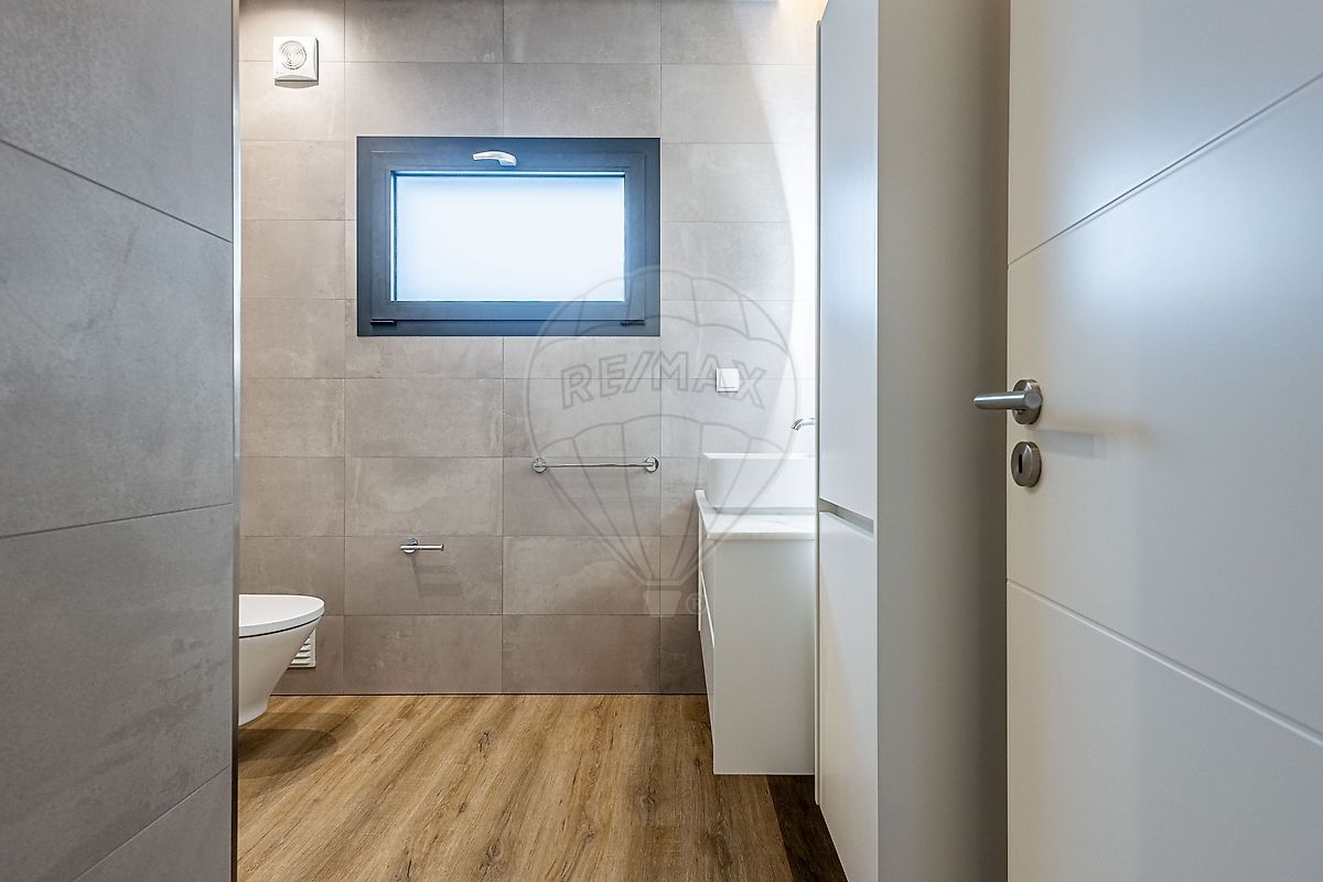 No primeiro piso, destacam-se três quartos, sendo um deles suite, todos com roupeiros embutidos forrados a linho e iluminação LED. As áreas interiores, com cerca de 263 m² de construção, foram pensadas ao detalhe para garantir o equilíbrio perfeito entre design, conforto e bem-estar.