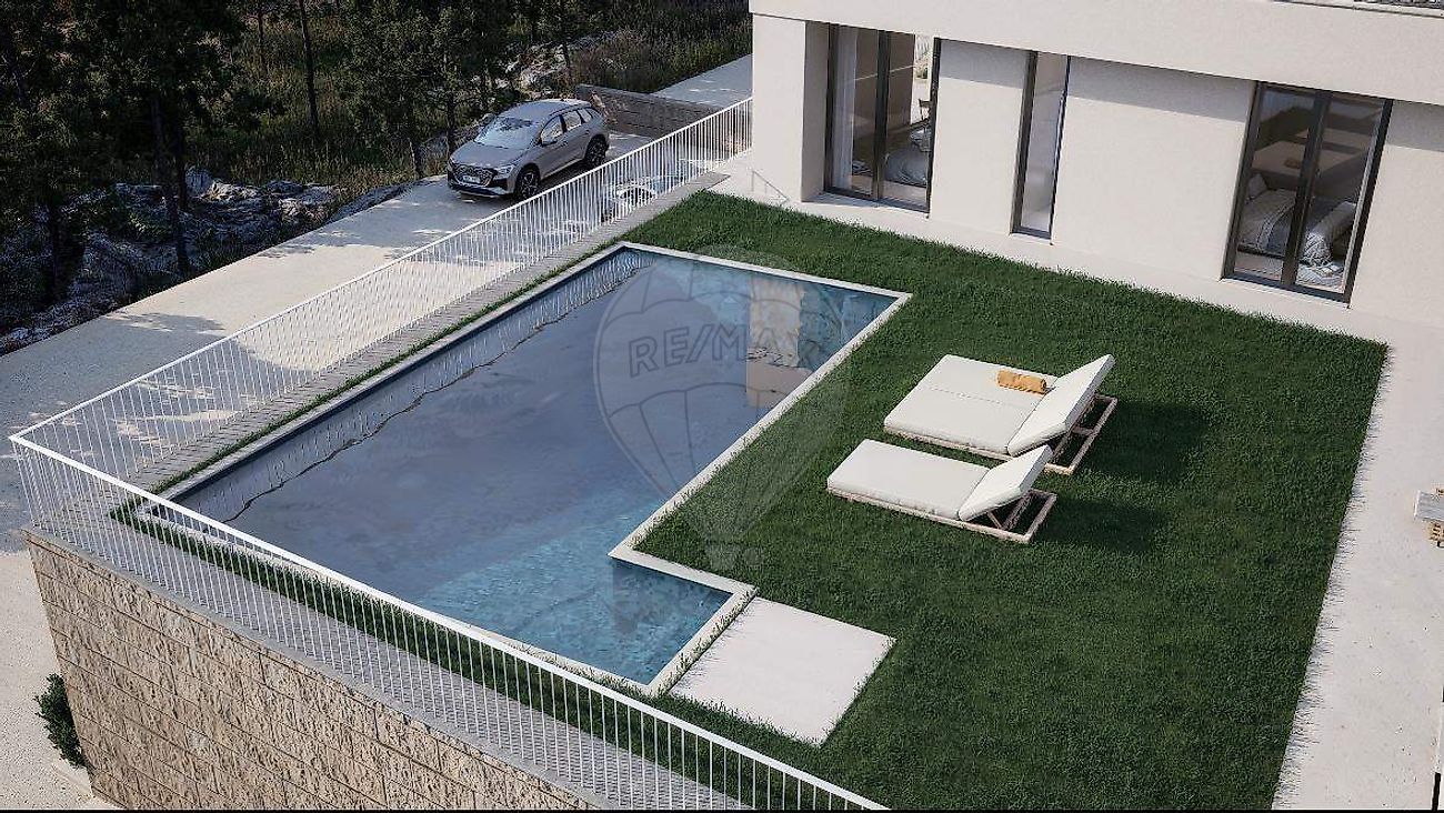 A moradia apresenta uma área de implantação de 197,16 m², complementada por uma garagem em cave com 87,17 m² e uma elegante piscina com 36 m², pensada para momentos de lazer e bem-estar.