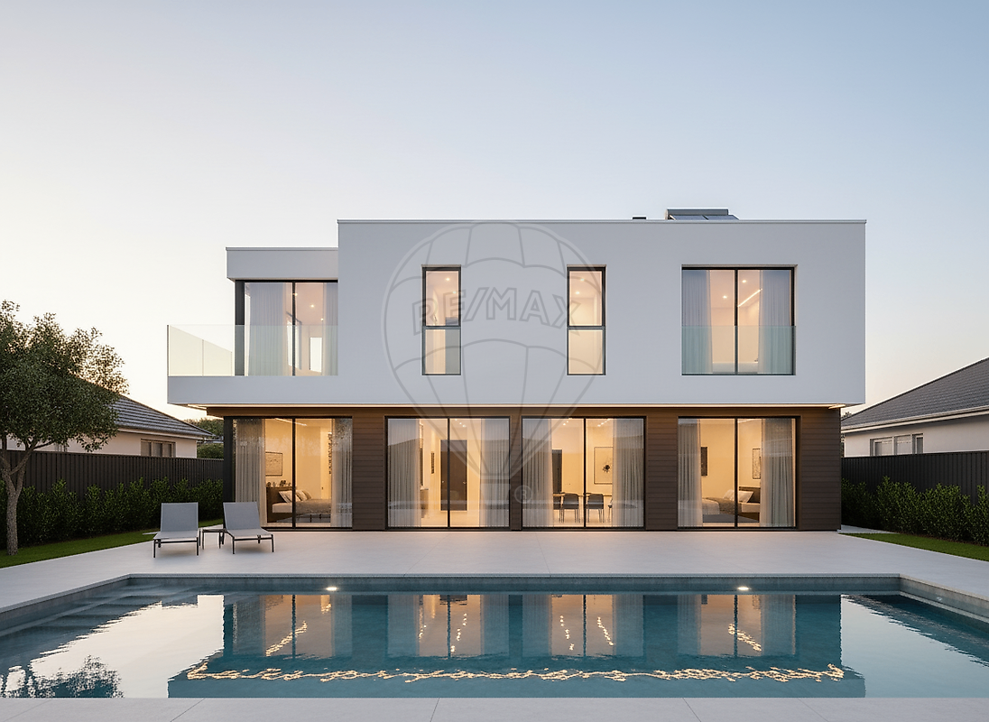 Com uma área total de construção de aproximadamente 281 m², distribuída por três pisos, esta moradia foi projetada com arquitetura contemporânea, privilegiando áreas amplas, luminosidade natural e uma ligação harmoniosa entre interior e exterior.