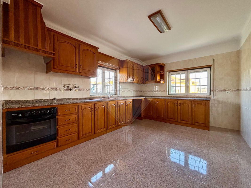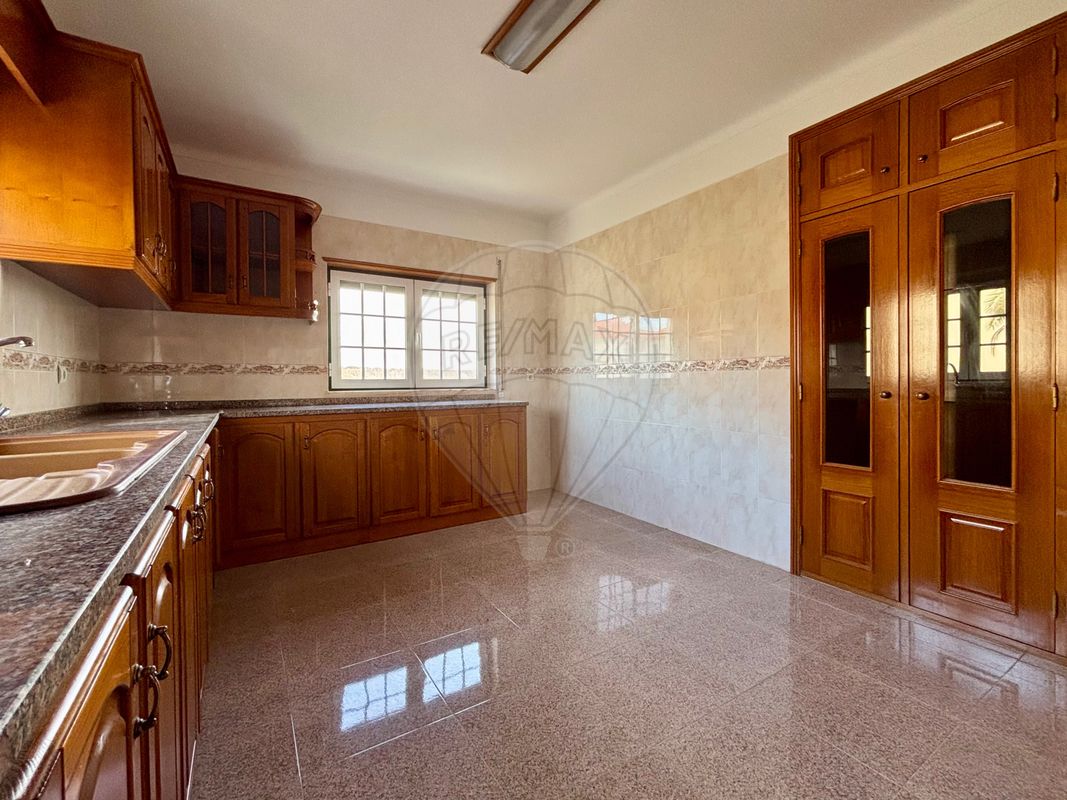 Zonas de convívio: A sala espaçosa com lareira acolhedora e a cozinha ampla que pode ser transformada numa cozinha de sonhos com uma grande ilha no centro, encontram-se no piso inferior