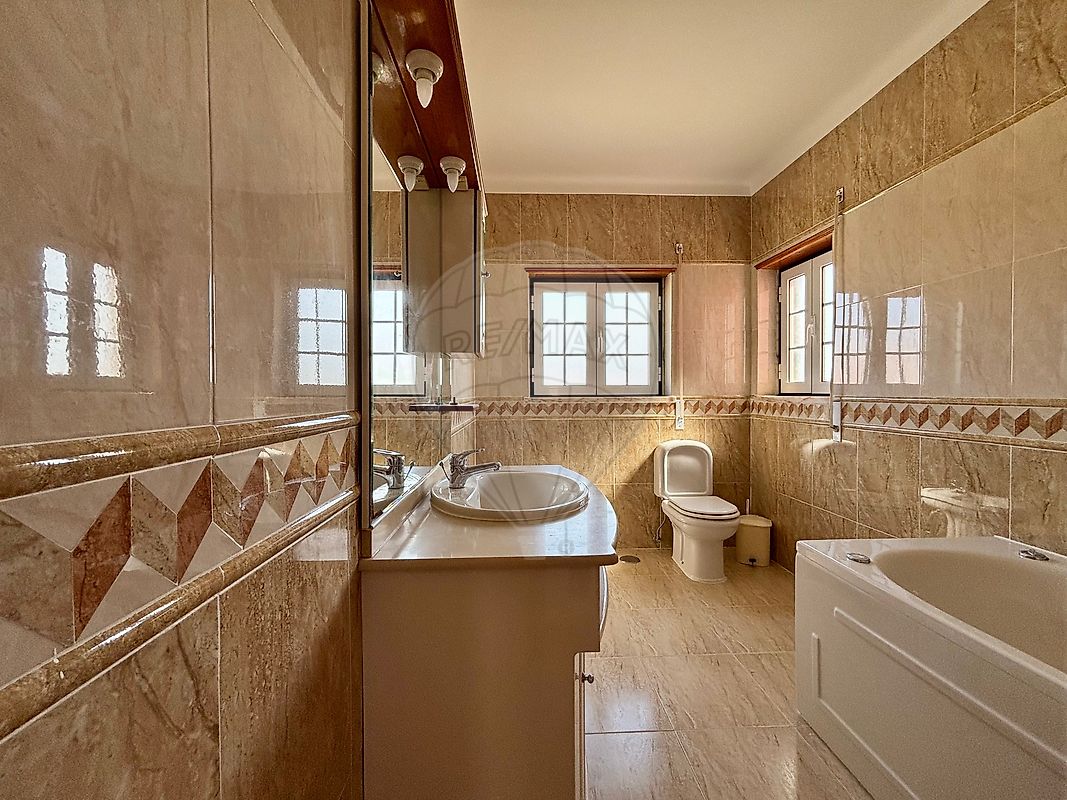 Casas de banho: Tem uma casa de banho completa em cada piso, uma com banheira jacuzzi, e outra com poliban.
