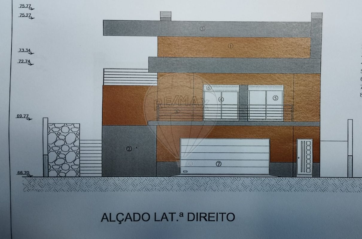 Lote de terreno com 760 m2 com ruína e projeto aprovado a pagamento para a construção de moradia de linhas modernas com 2 pisos. Área de implantação de 221m2 e área de construção de 441m2.