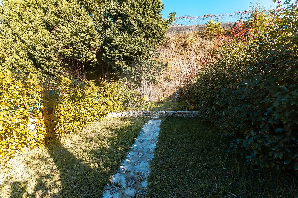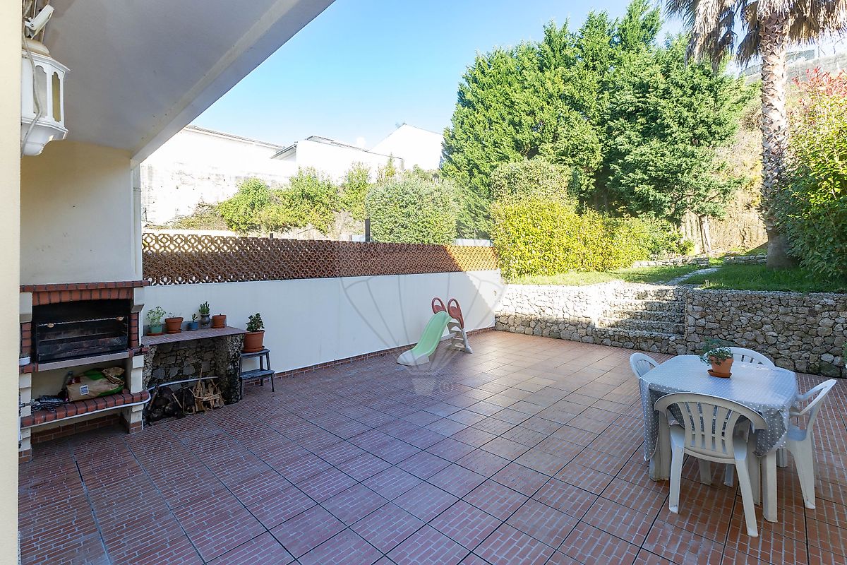 Nas traseiras da moradia encontramos um agradável jardim com churrasqueira e espaço para pequena horta.
