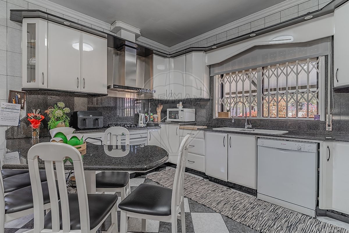 A garagem tem capacidade para 4 viaturas e inclui detalhes únicos: snooker, garrafeira e espaço de arrumação, criando um ambiente multifuncional para lazer ou hobbies.