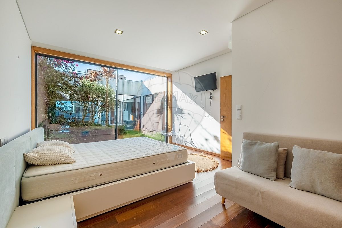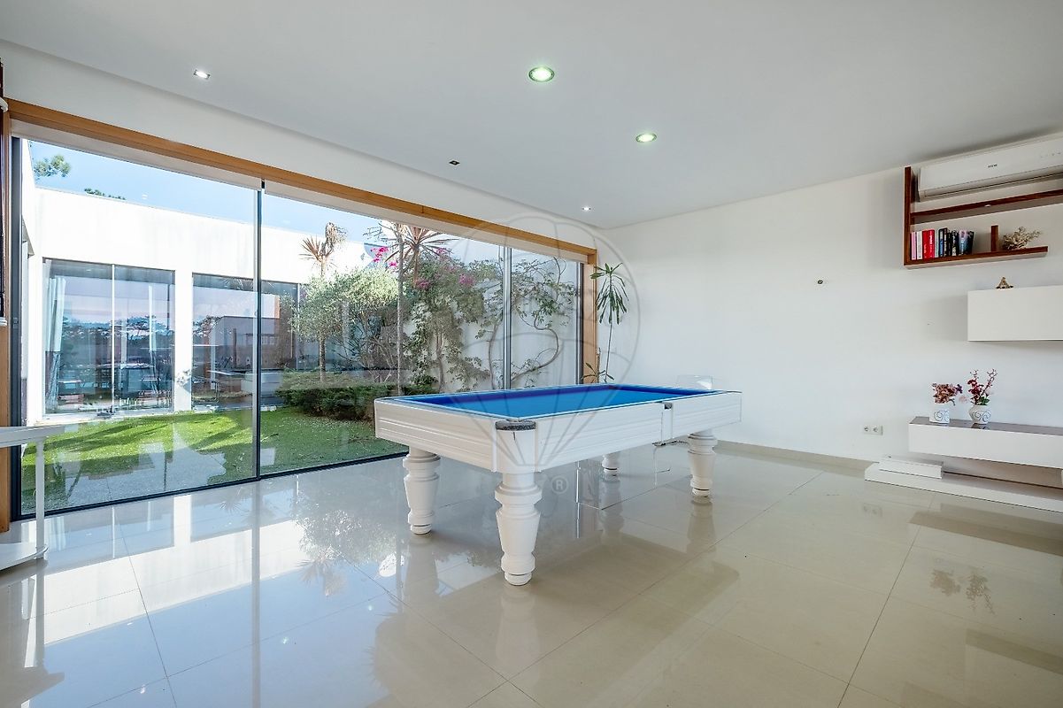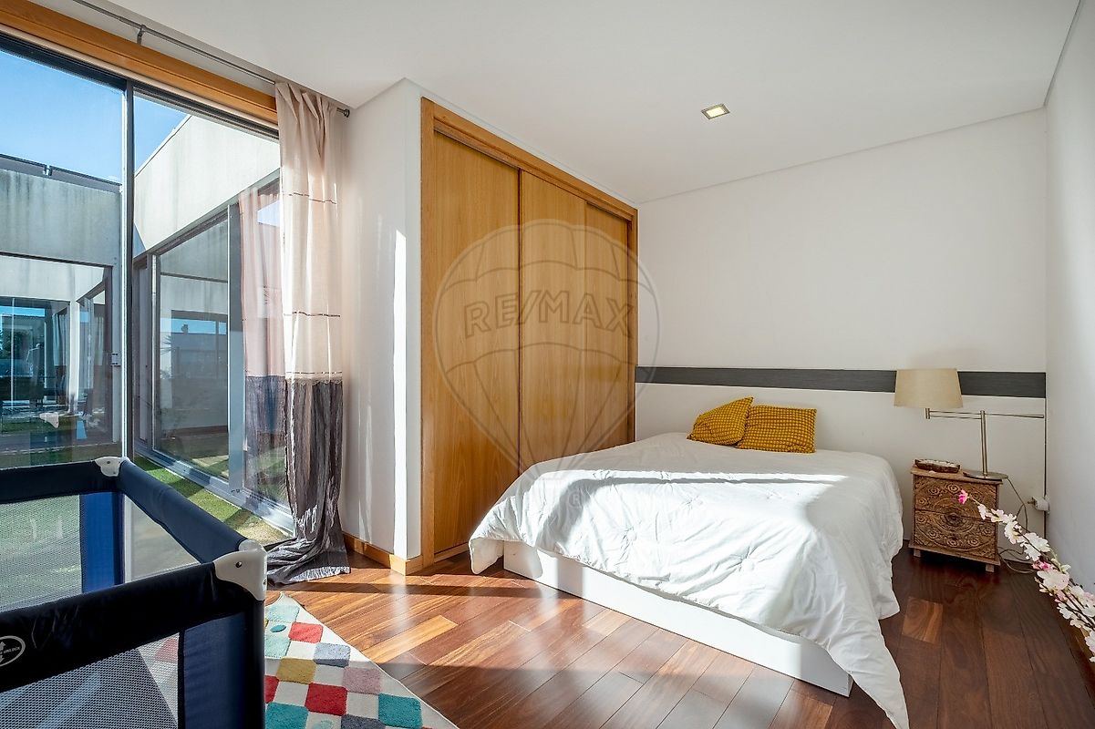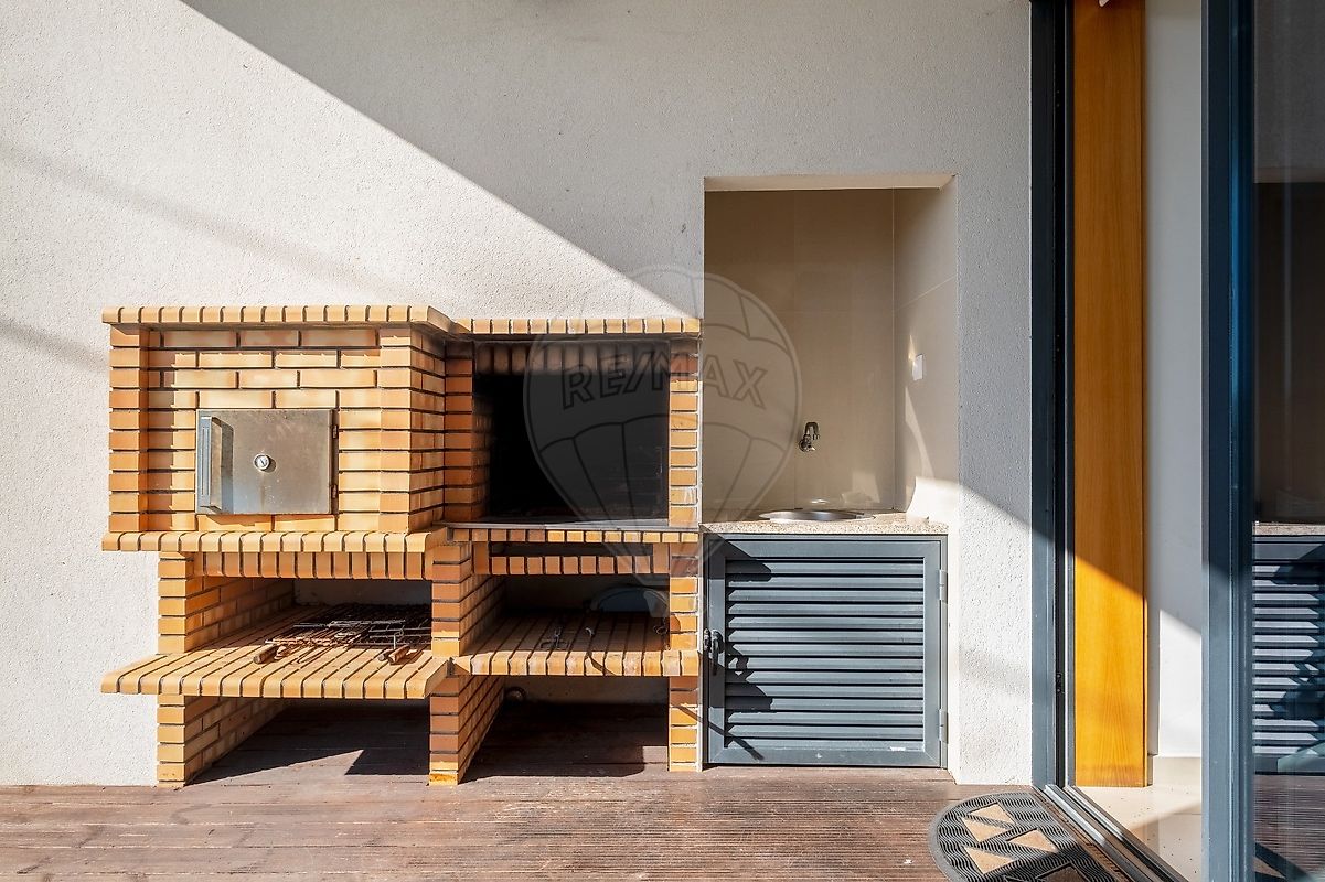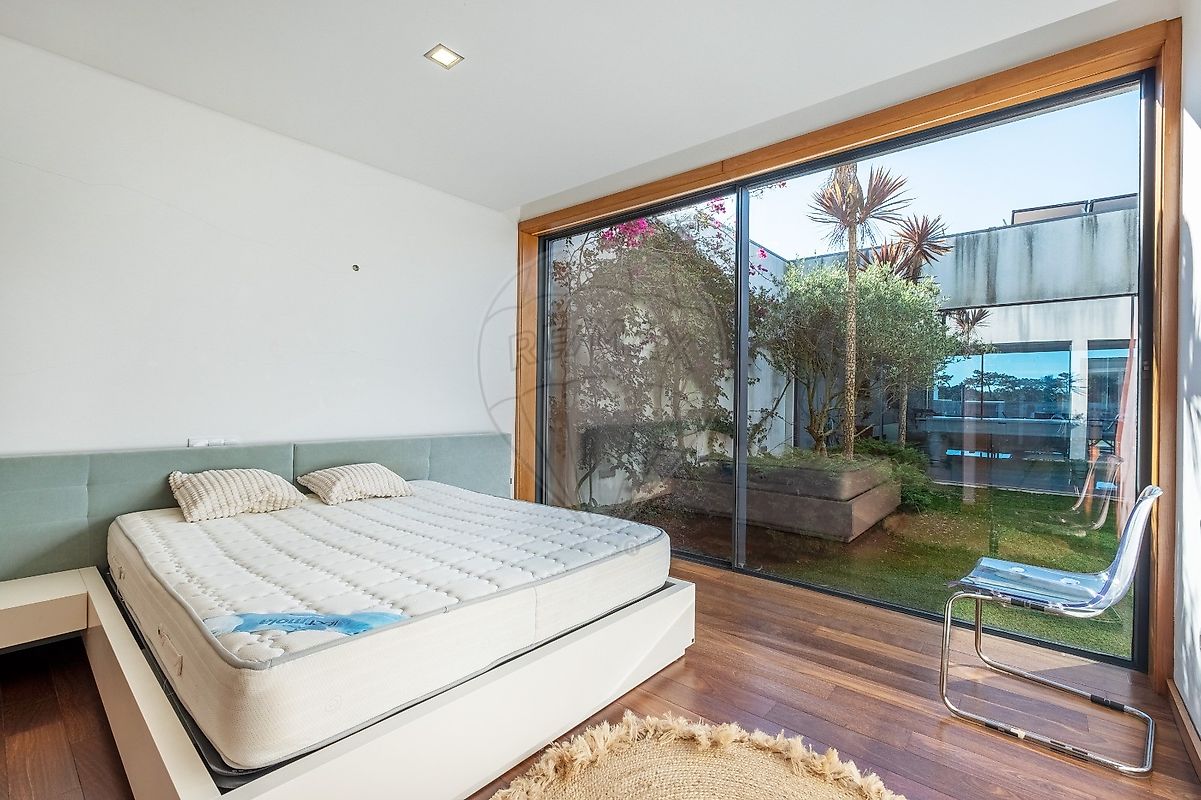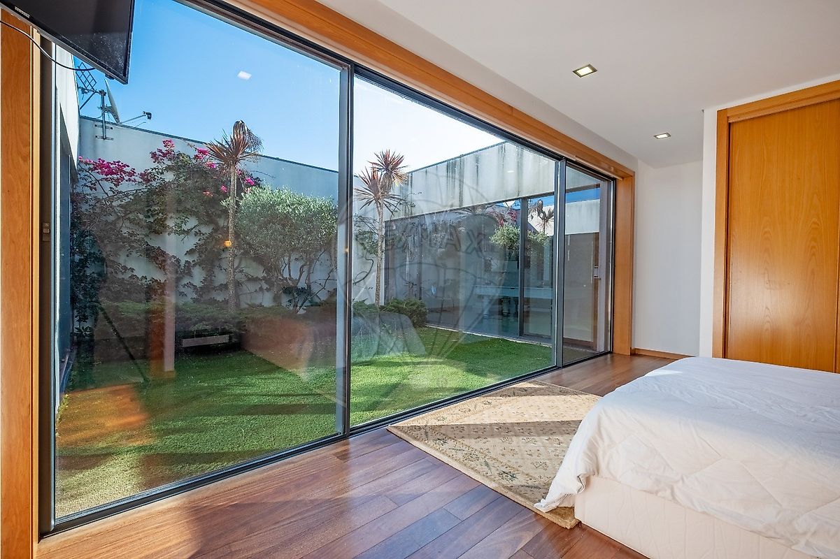 A área exterior é um verdadeiro paraíso, com uma piscina refrescante e um jardim que convida ao lazer. O deck ao redor da piscina é perfeito para relaxar ao sol, enquanto o forno e a churrasqueira garantem deliciosos encontros gastronómicos. Os estores elétricos e o ar condicionado trazem conforto em todas as estações do ano.