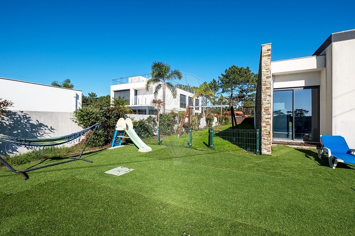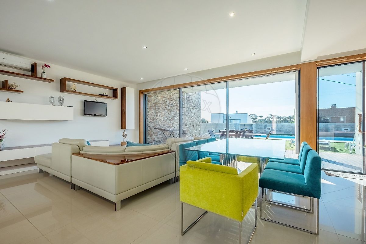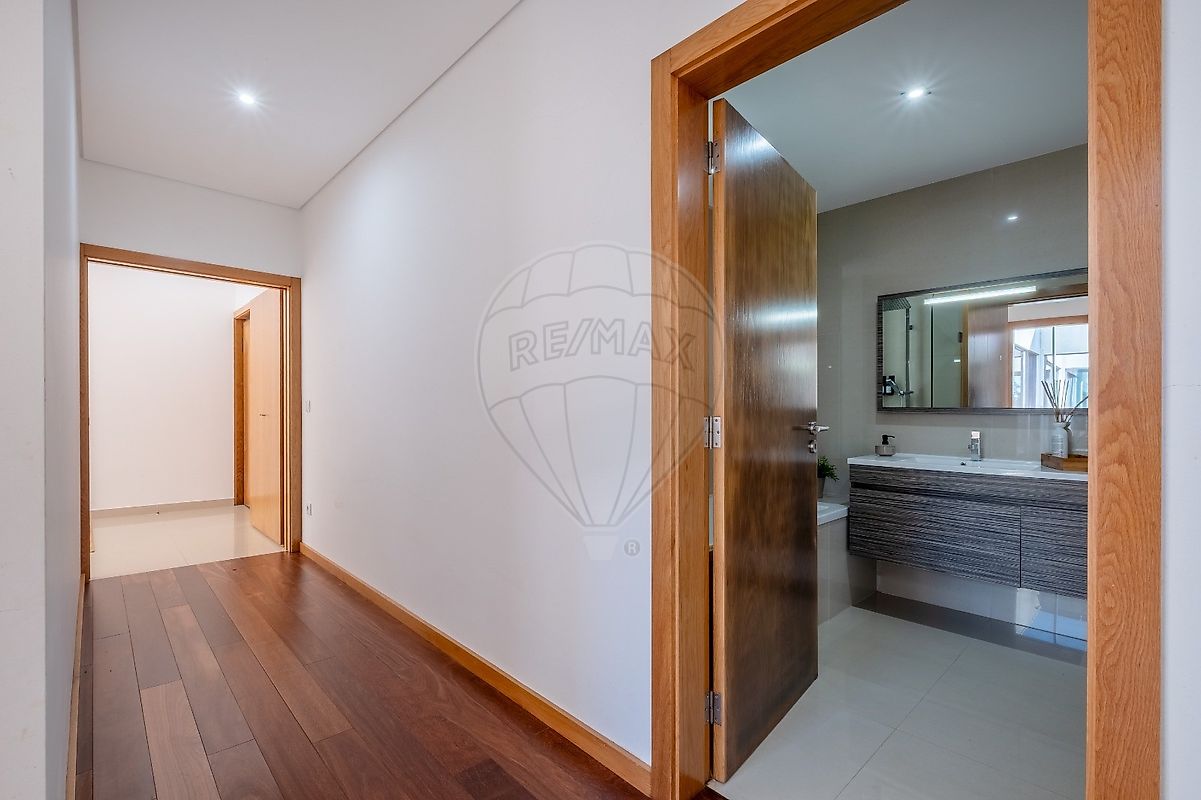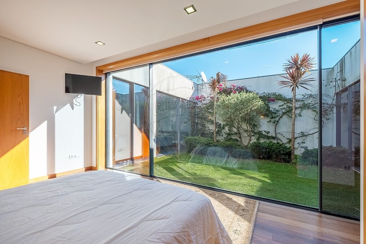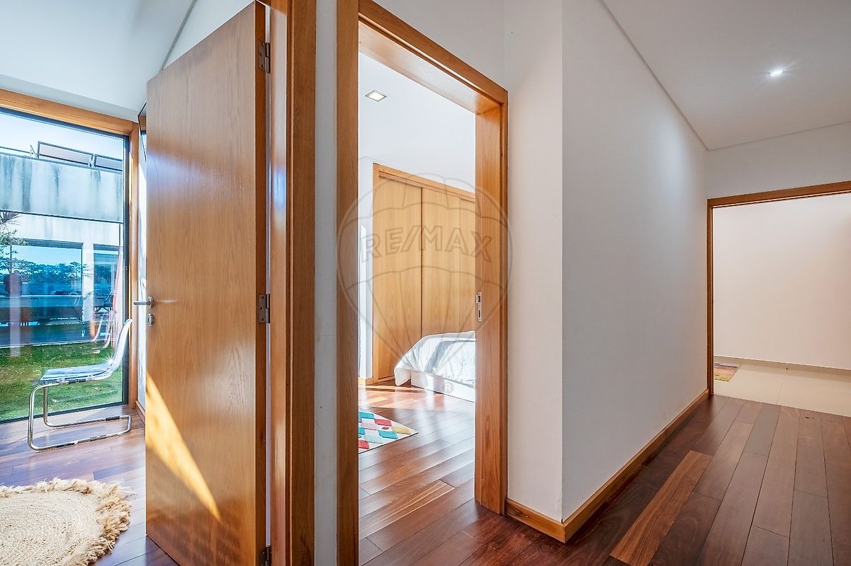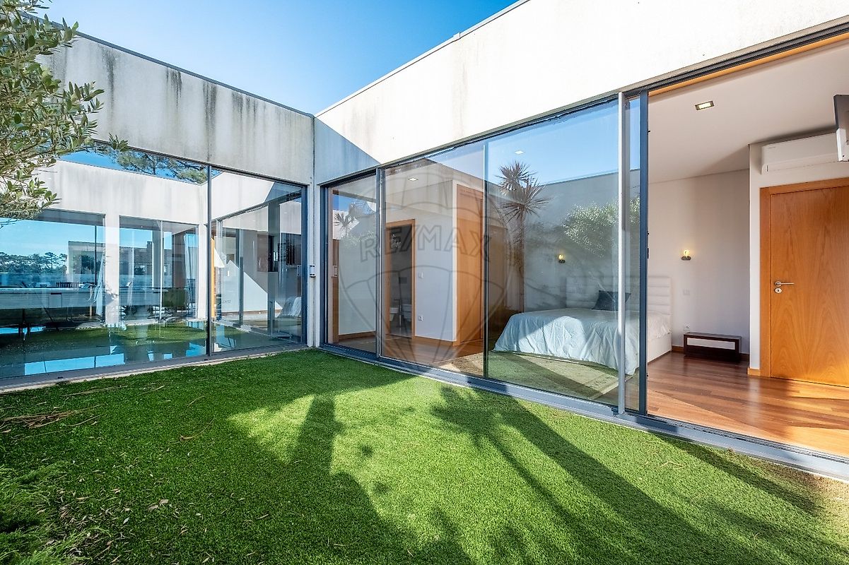 A área exterior é um verdadeiro paraíso, com uma piscina refrescante e um jardim que convida ao lazer. O deck ao redor da piscina é perfeito para relaxar ao sol, enquanto o forno e a churrasqueira garantem deliciosos encontros gastronómicos. Os estores elétricos e o ar condicionado trazem conforto em todas as estações do ano.