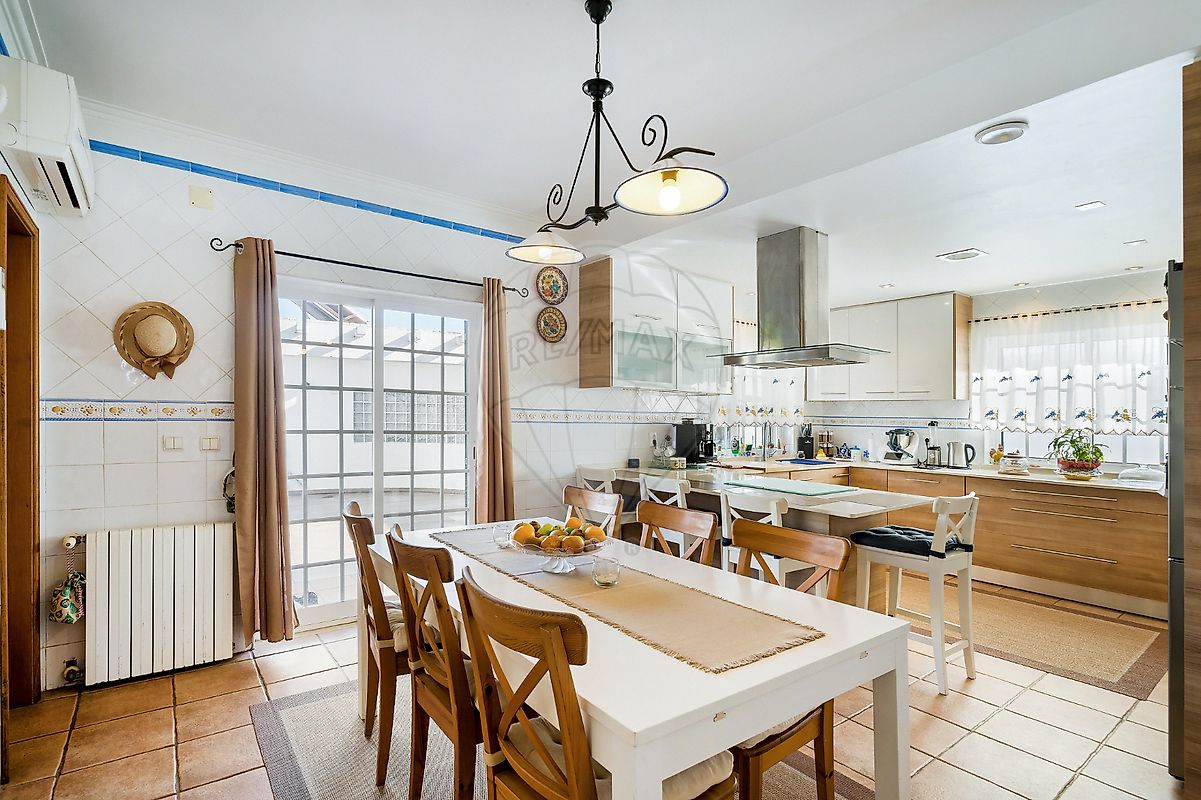 - Zona de refeições, com ar condicionado, em open space com cozinha remodelada, toda equipada, com eletrodomésticos encastrados (placa de indução, exaustor, frigorífico, forno, microondas e máquina de lavar loiça), com acesso à zona de lazer exterior.