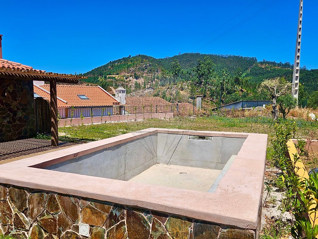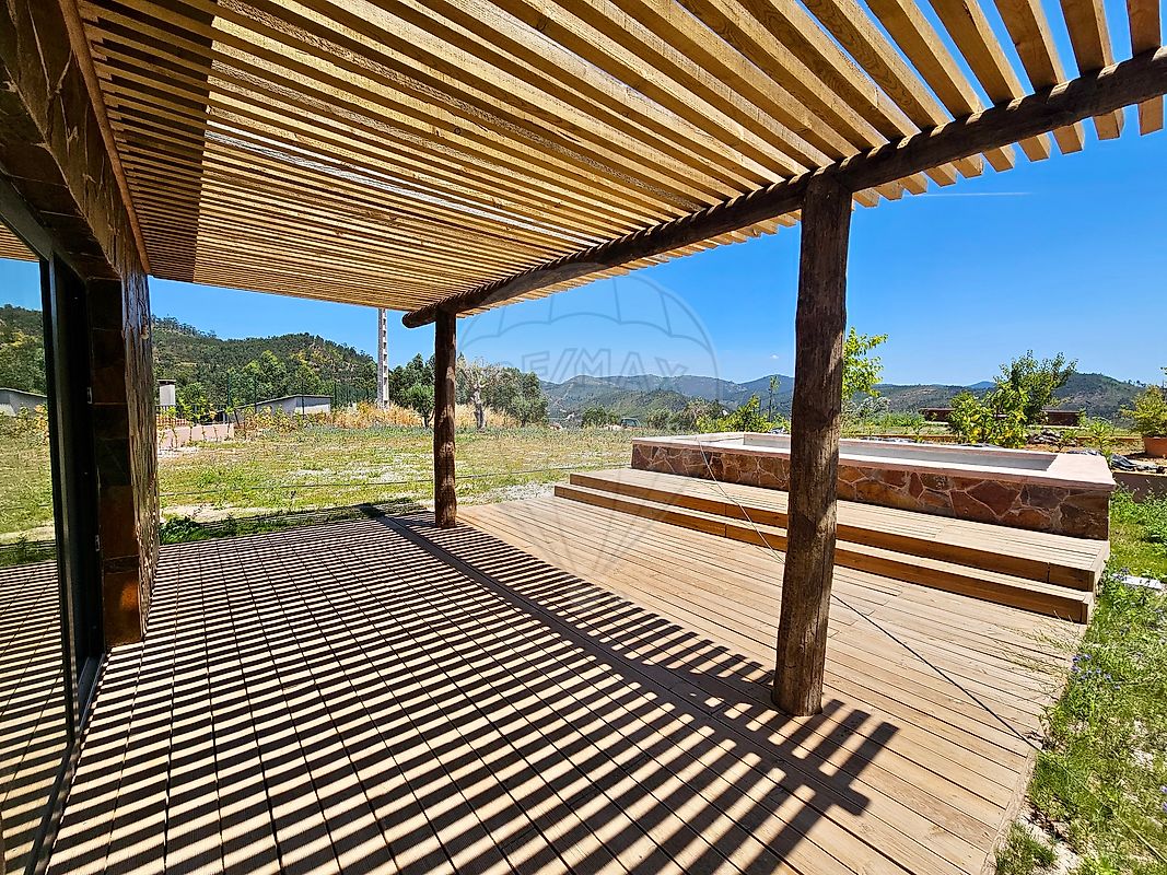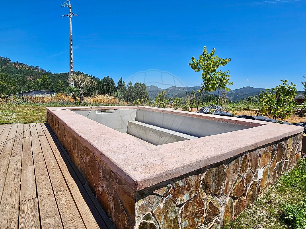 This house is located in the peaceful village of Maxial, just 300 meters from the river and a 5-minute drive from Lago Azul and Ferreira do Zêzere, with views of the Castelo de Bode reservoir. It has 170 m2 of construction on a 550 m2 plot. It is a villa built from scratch with 3 bedrooms, garden, swimming pool and closed garage for car and boat.