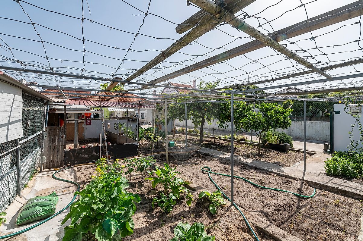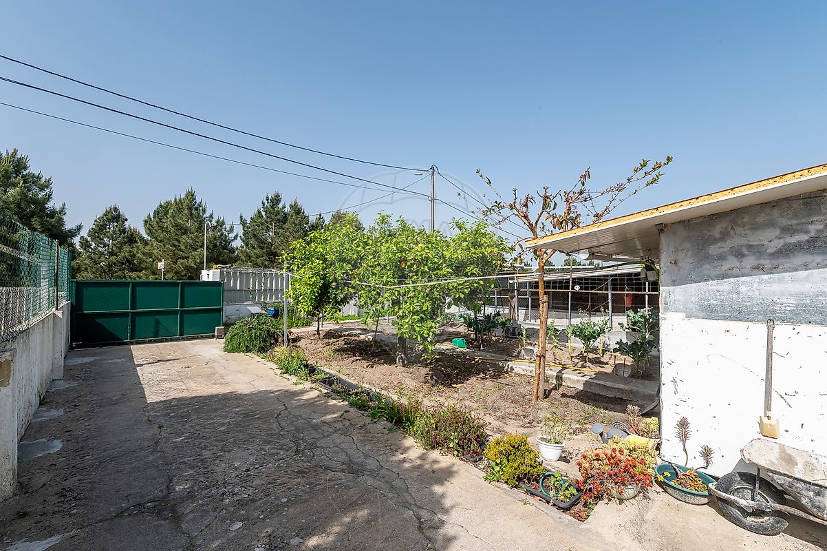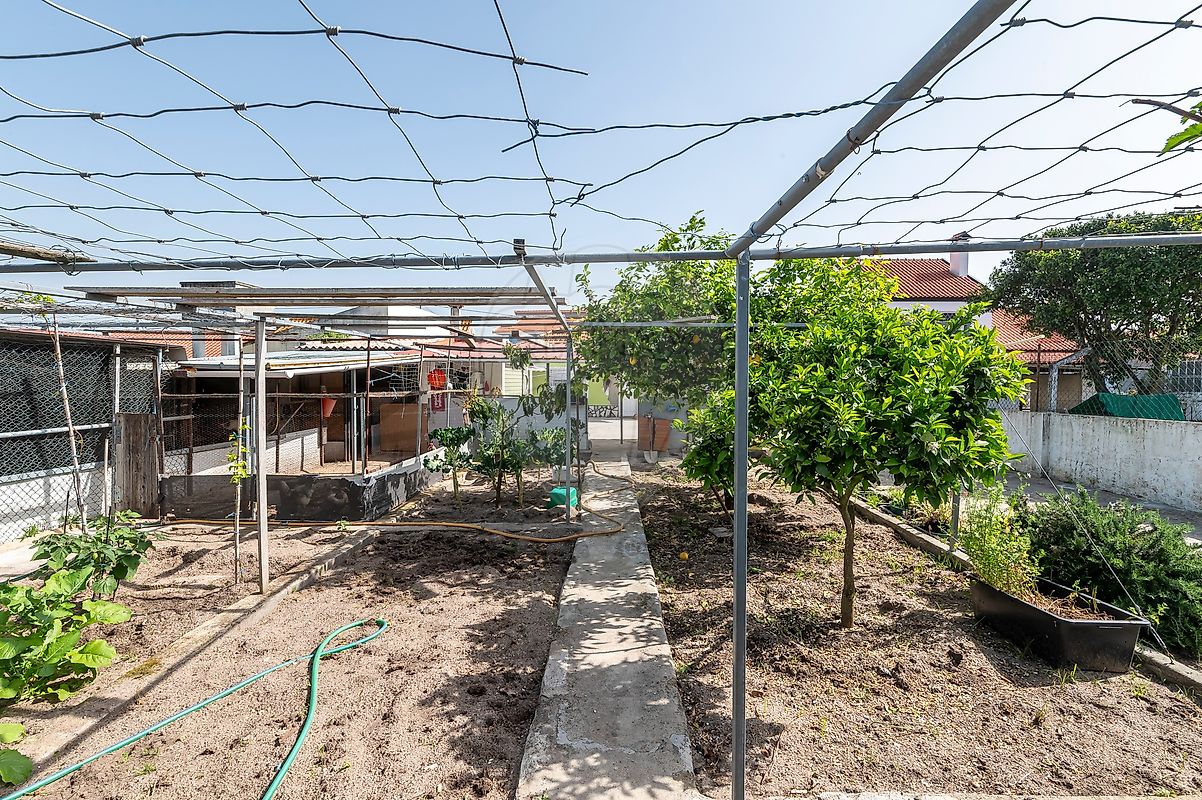 No exterior, encontra um verdadeiro espaço de vida: terreno generoso com espaço para vários carros, horta, árvores de fruto e área dedicada à criação de animais domésticos.