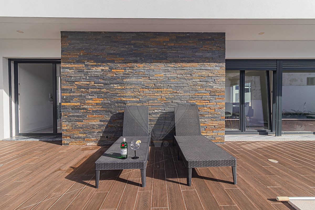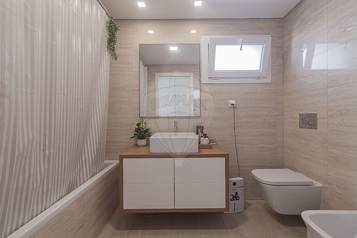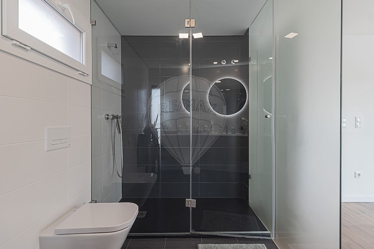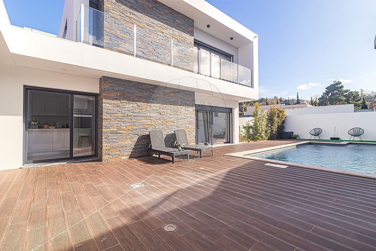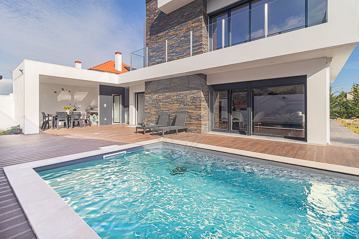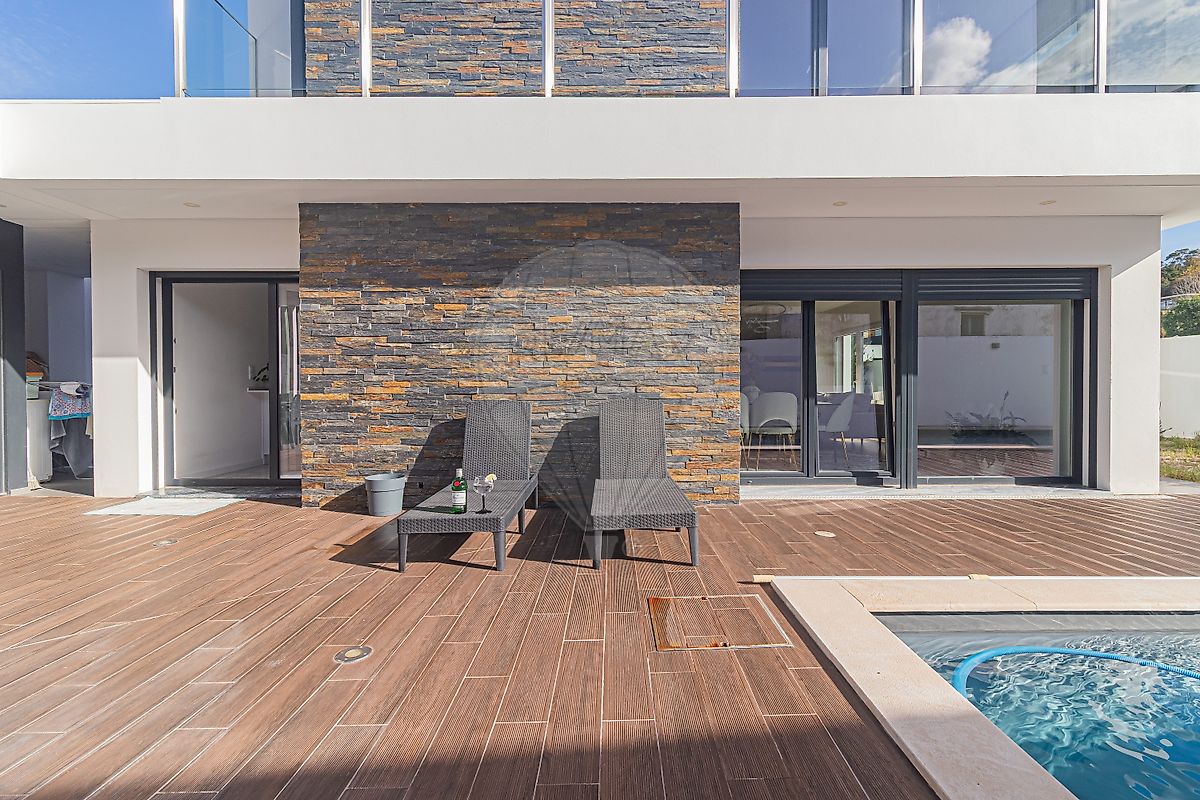 Conta com uma óptima Piscina de água salgada, Churrasqueira, Alpendre coberto de 15 m2, para as suas refeições no exterior (todo o ano), Pergúla de 20 m2, para resguardar a sua viatura e com espaço para mais 2 à frente (com acesso através de portão automatizado). Casa-de-banho de apoio ao exterior.
