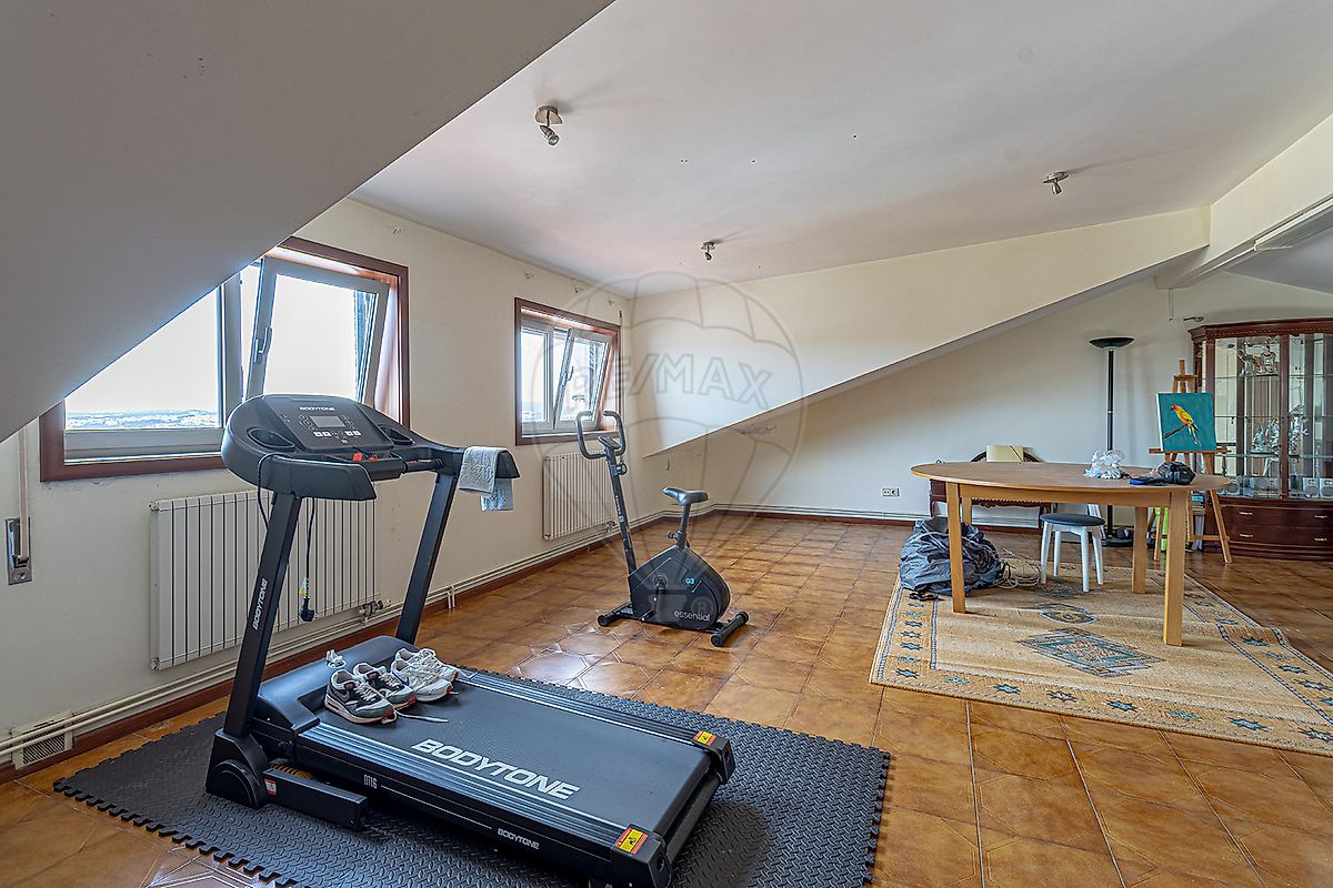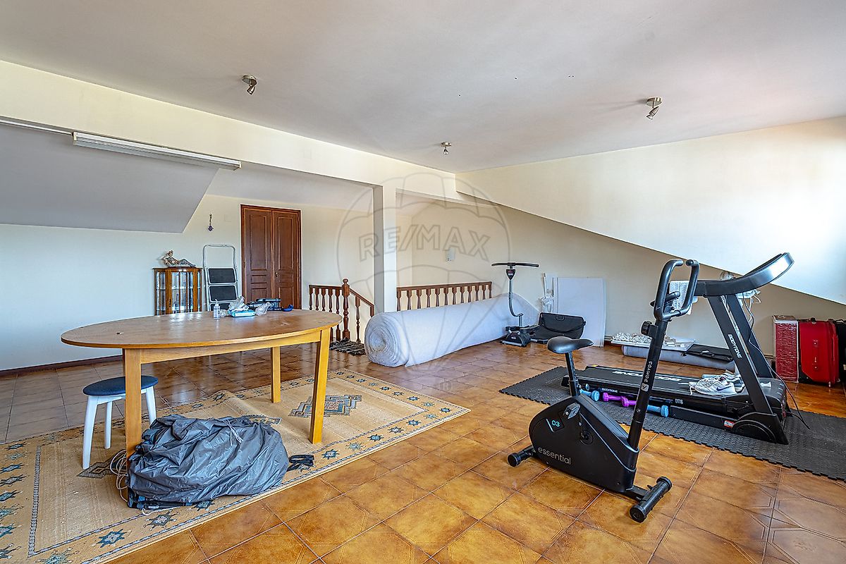 - Garagem com janela e ar condicionado, um quarto, casa de banho e arrumos.