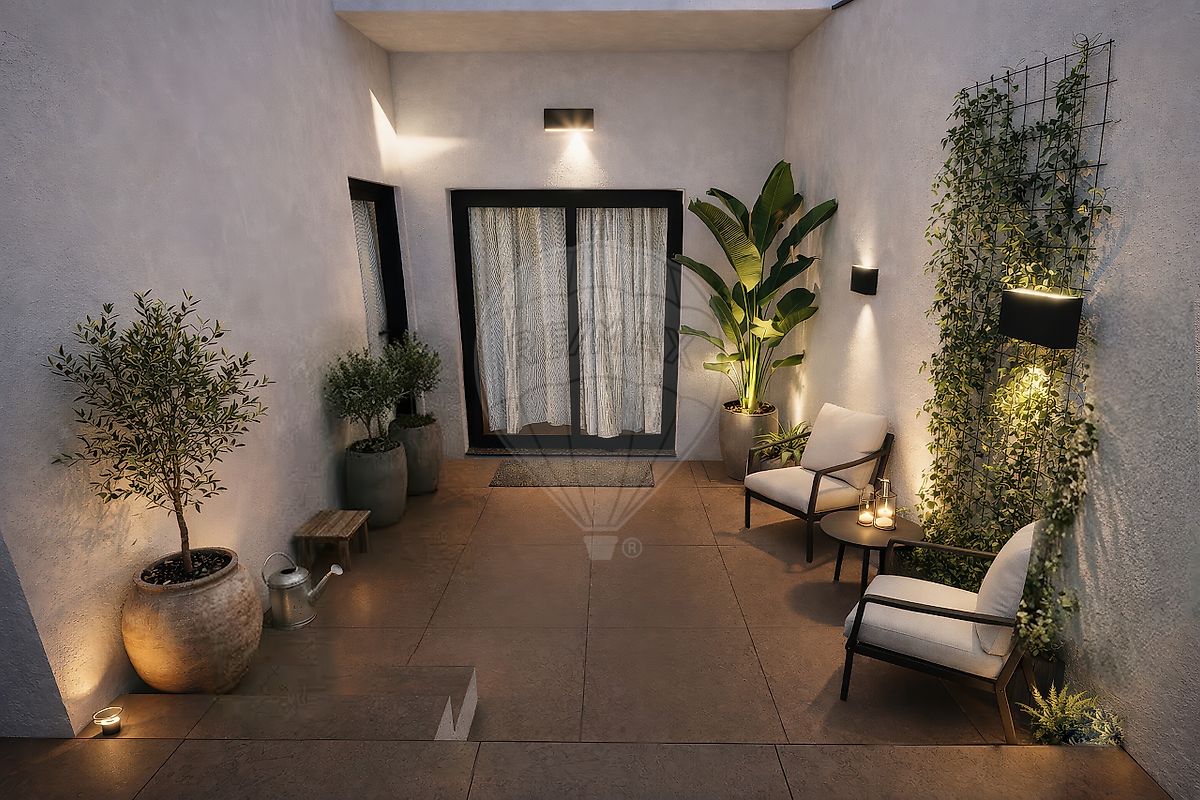 No exterior, a moradia dispõe de um agradável terraço/pátio, ideal para momentos de lazer, e uma garagem box com capacidade para um automóvel.