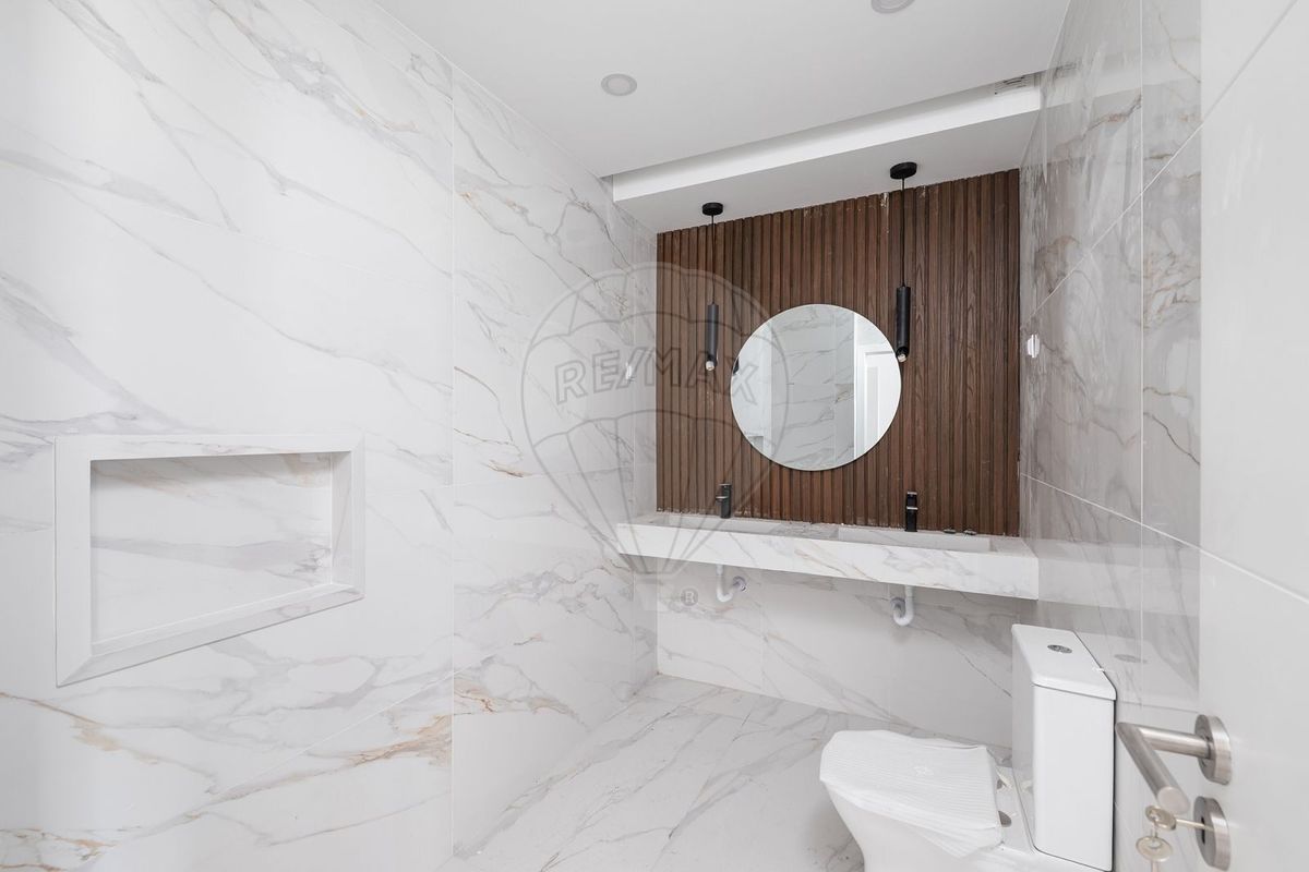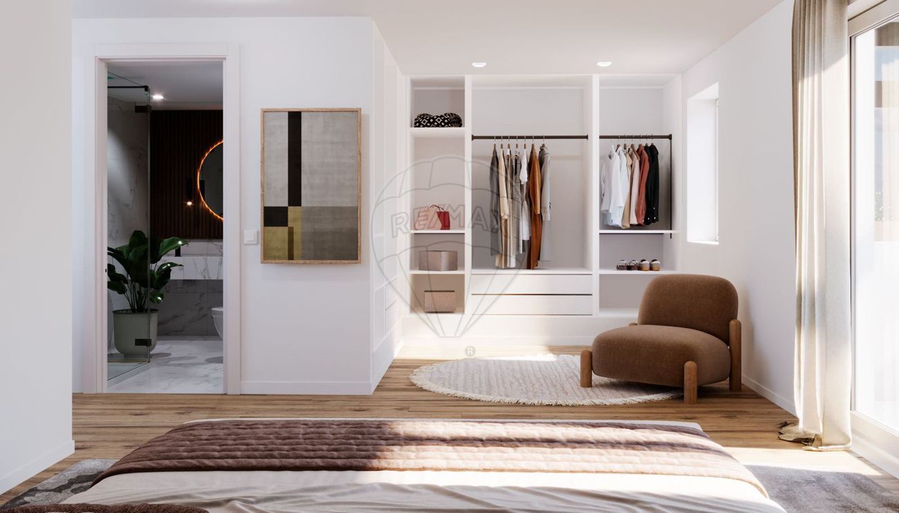 Cada moradia foi desenhada com linhas contemporâneas e acabamentos de excelência, distribuída por dois pisos que privilegiam a luz natural e a sensação de amplitude. O piso térreo integra zonas de convívio com ligação direta ao logradouro e aos espaços comuns do condomínio, criando continuidade entre interior e exterior. No piso superior, a área privada revela quartos amplos e uma master suite com closet, onde a atenção ao detalhe se nota nos materiais escolhidos, como os lavatórios em