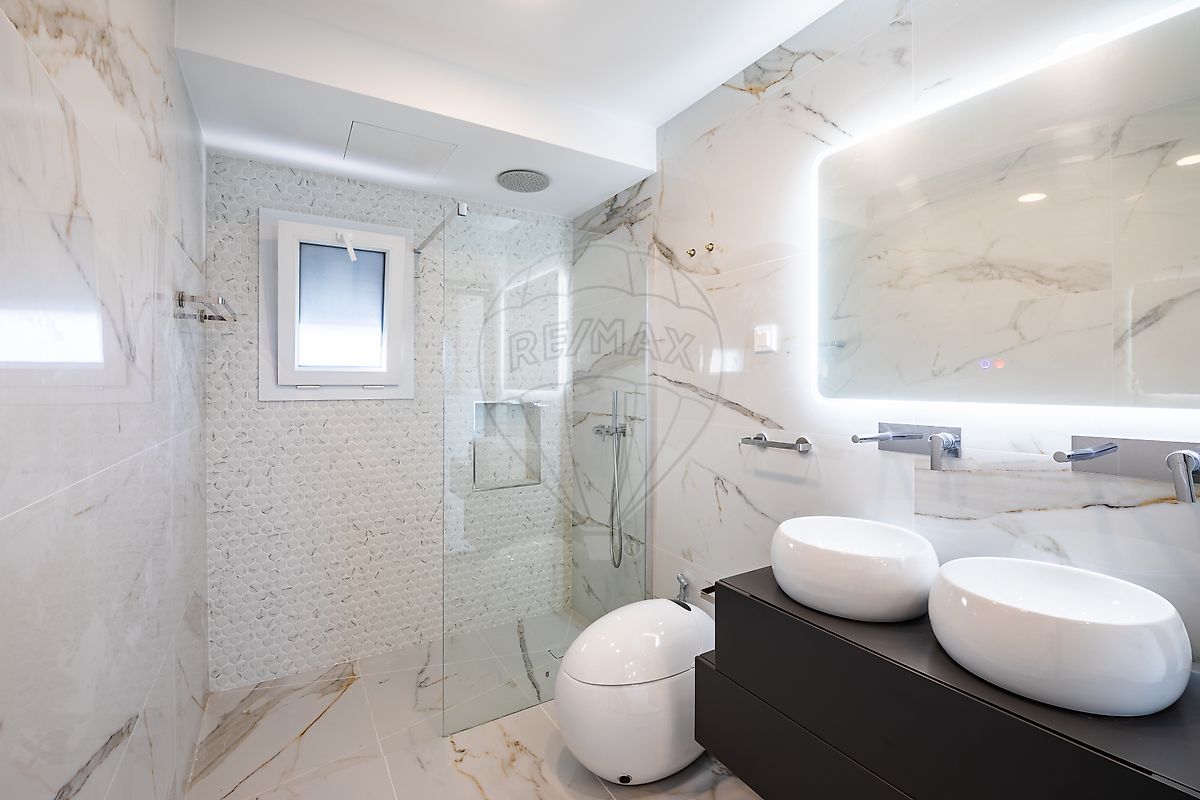 No piso 0, a entrada conduz a uma ampla sala em open space com a cozinha, ambas com ligação direta ao exterior. A cozinha, de acabamento mate, totalmente equipada e com ilha, integra materiais e equipamentos de gama superior. Este piso dispõe ainda de lavandaria, WC de apoio e três quartos amplos com roupeiros, servidos por um WC social completo com sanitas inteligentes. O exterior prolonga naturalmente o interior, com jardim e piscina, criando um espaço ideal para convívio e lazer.