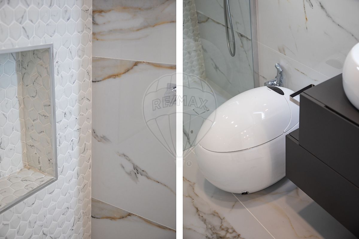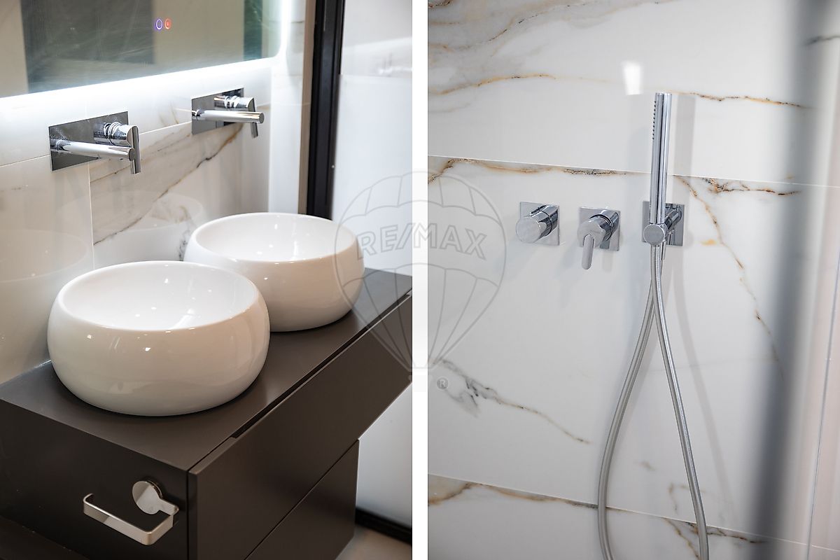 O piso 1 é inteiramente dedicado à master suite, um verdadeiro refúgio privado. Aqui encontramos um walk-in closet com ligação direta à casa de banho, garantindo continuidade visual e funcionalidade, bem como sanitas inteligentes e acabamentos premium. A suite tem acesso direto a um terraço de grandes dimensões, com vista sobre a serra, equipado com tela automatizada e retroprojetor, permitindo usufruir de cinema ao ar livre com total privacidade.