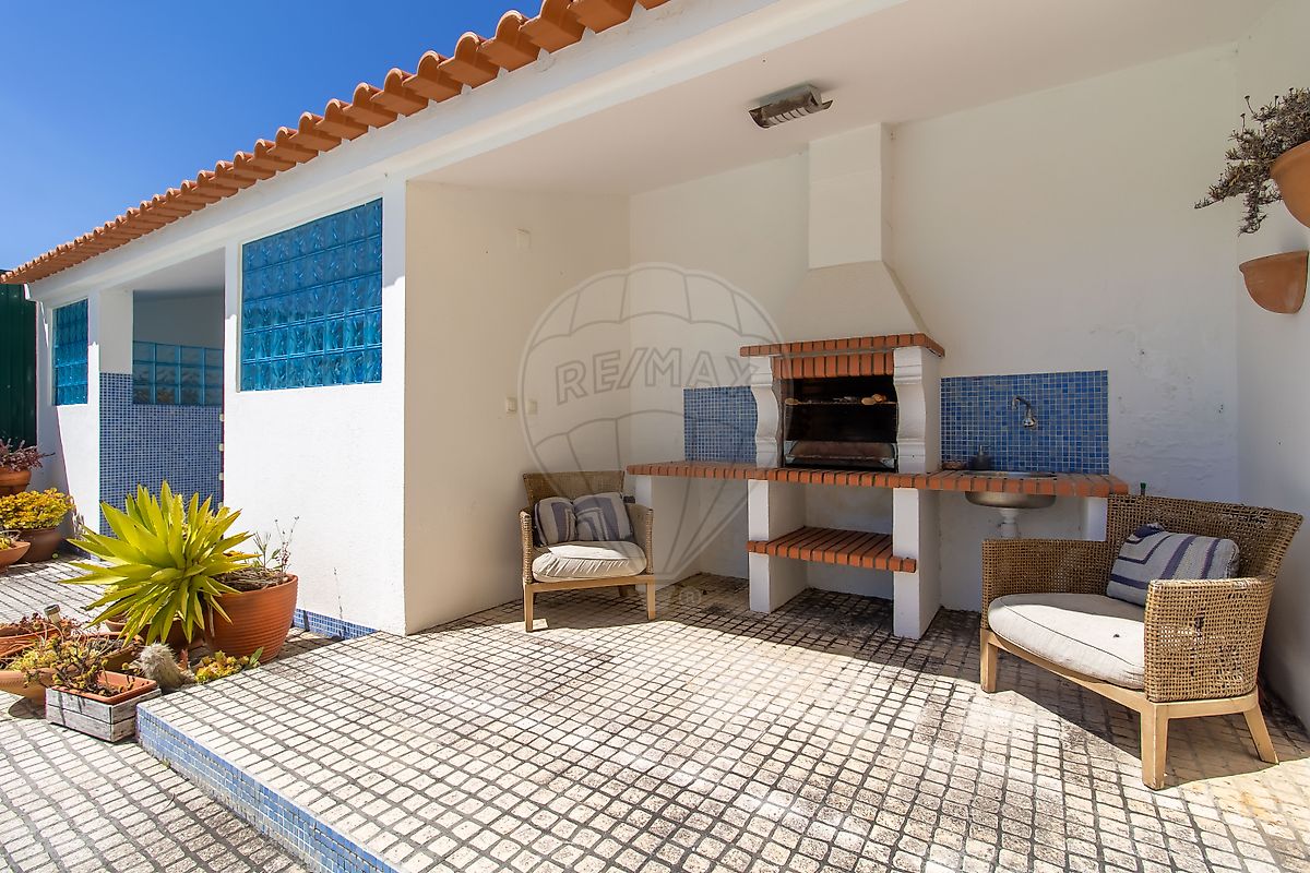 Ao adentrar na propriedade, destaca-se um encantador espaço arborizado que confere um ambiente de lazer natural e acolhedor. Numa das laterais, existe um espaço dedicado à armazenagem de lenha, acompanhado de uma churrasqueira coberta, casa das máquinas, área para guardar material de apoio à piscina e um chuveiro que facilita o uso deste espaço. Na lateral oposta, encontra-se espaço para estacionar pelo menos duas viaturas e uma generosa garagem independente com portão. Na parte de trás da moradia, uma ampla piscina de água doce complementa este ambiente de lazer.