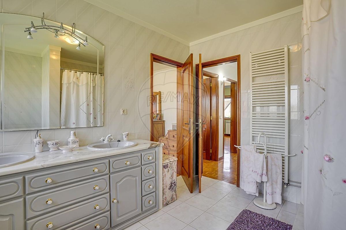 O Rés do chão onde se encontra a entrada principal da moradia, é composto por um salão com com mezanino, cozinha ampla, 4 quartos muito espaçosos, um deles Suite e 2 casas de banho. Todos os espaços inclusíve as casas de banho têm luz direta.