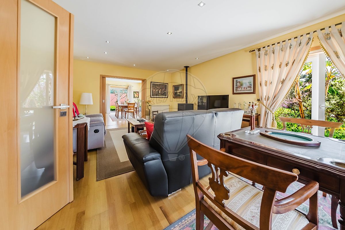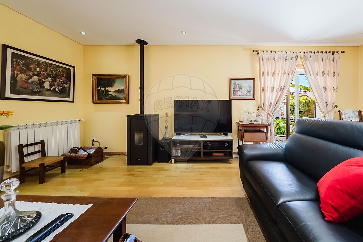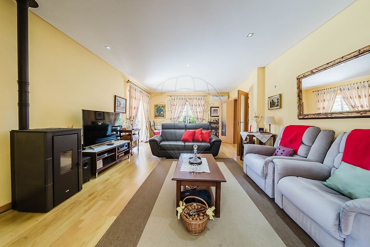 Ao entrar, é impossível não notar a atmosfera acolhedora e sofisticada da zona social. A sala de estar apresenta-se como um espaço elegante e confortável, ideal para momentos de convívio ou relaxamento em família. Equipada com ar condicionado, aquecimento central e ainda uma charmosa salamandra a pellets, criando assim um ambiente quente e acolhedor nos dias mais frios.
