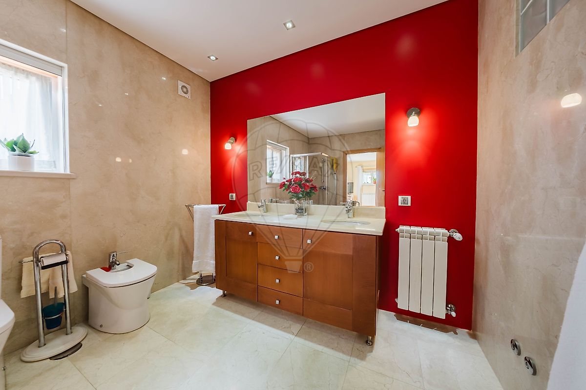 A moradia dispõe de quatro casas de banho, garantindo total conforto e funcionalidade para toda a família.