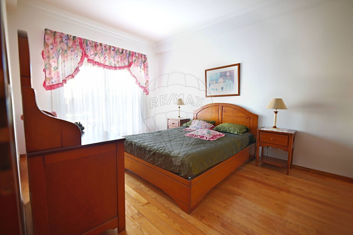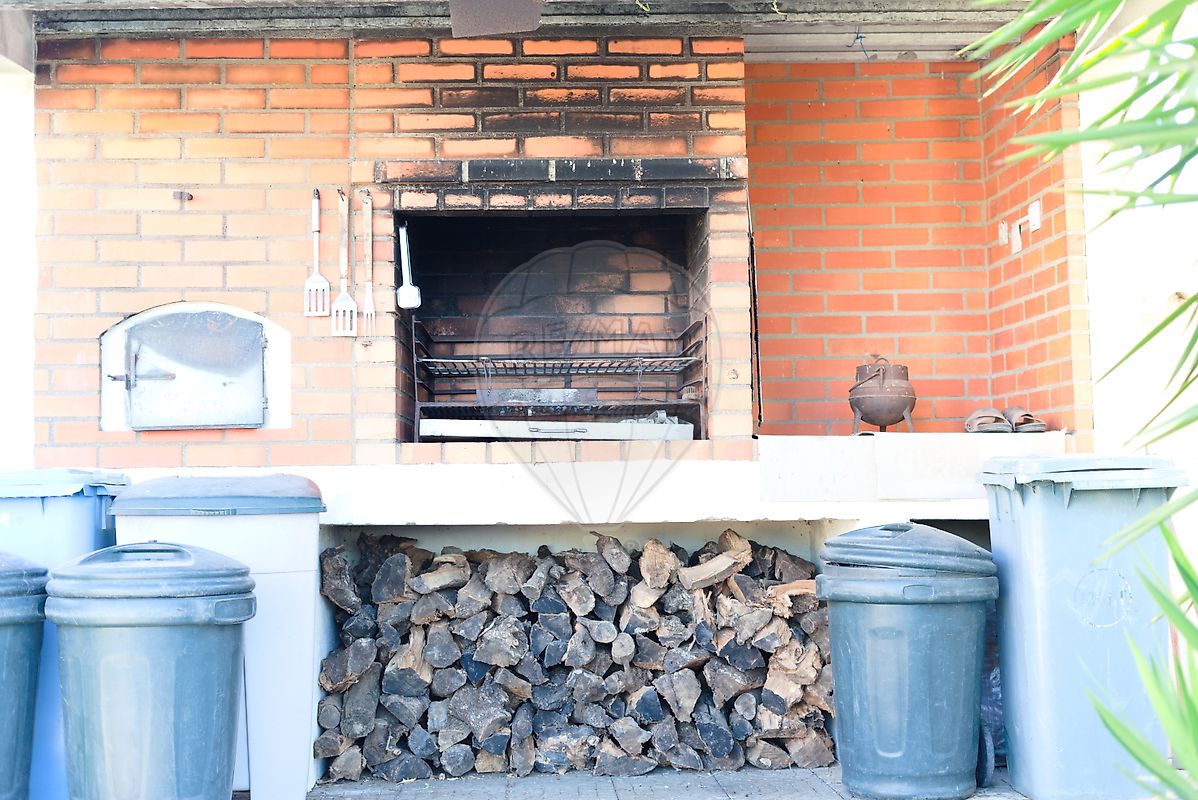 A casa principal é composta por quatro quartos, duas casas de banho, sala ampla e luminosa, cozinha funcional e um quarto de serviços/engomadoria, ideal para apoio ao dia a dia.