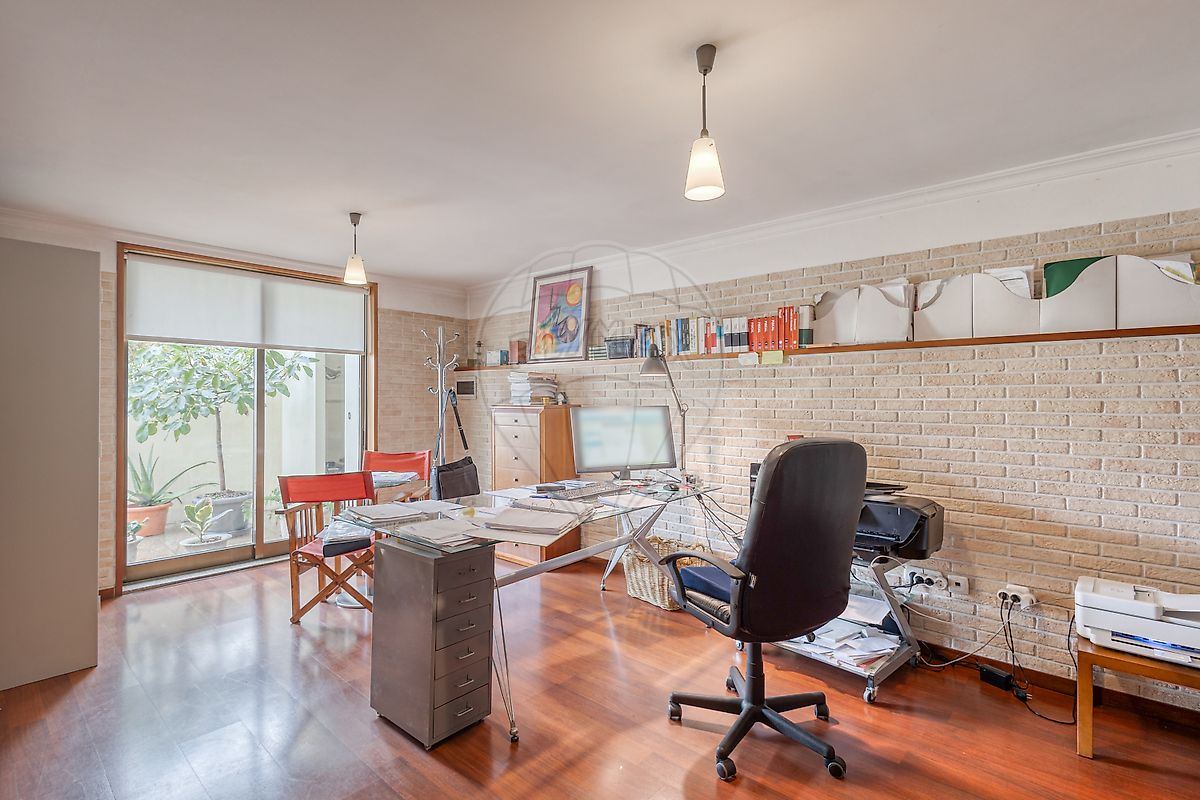No piso inferior, encontra-se um salão de grandes dimensões, um excelente escritório com janela e vista para o jardim, também equipado com aquecimento a pellets, bem como uma casa de banho de luxo, pensada ao detalhe.