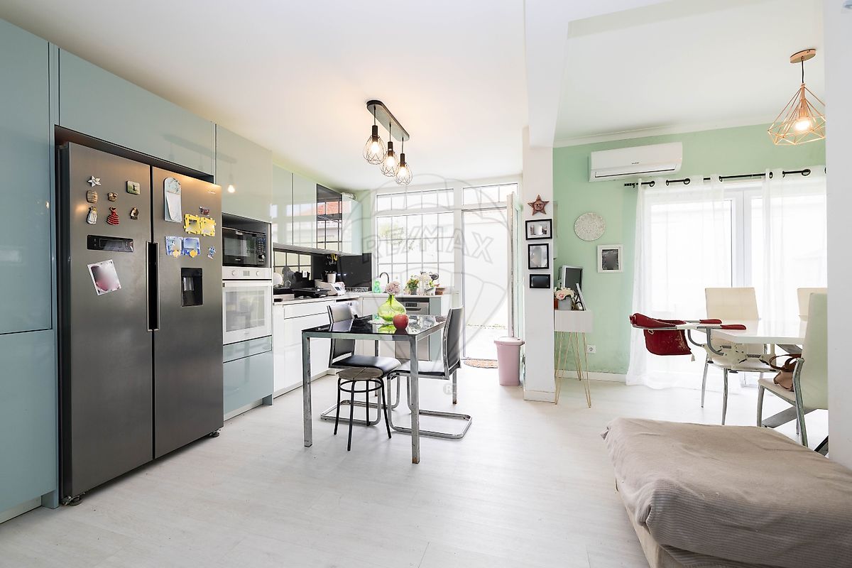 A moradia distingue-se pela sua zona social em open space, onde a sala e a cozinha se integram de forma moderna e funcional, criando um ambiente amplo e luminoso, perfeito para momentos de convívio em família ou com amigos. A ligação direta ao terraço e ao jardim proporciona um agradável espaço exterior, ideal para lazer, refeições ao ar livre ou momentos de descanso.