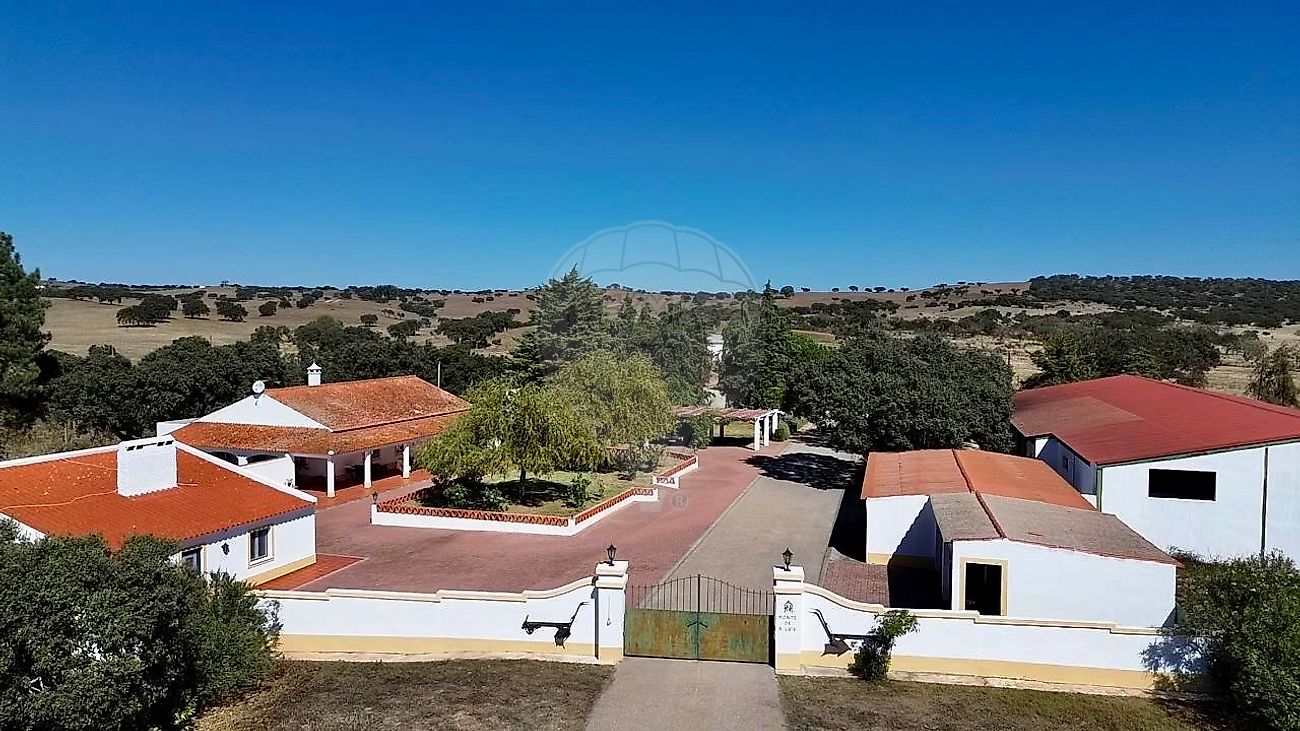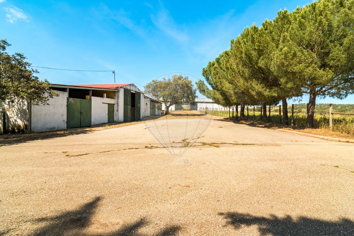 Área rústica - 17, 34 ha com culturas de montado de azinho e prados permanentes , divididos em 8 parques vedados com rede ursos forte e 2 fiadas de arame farpado e com água canalizada disponível
