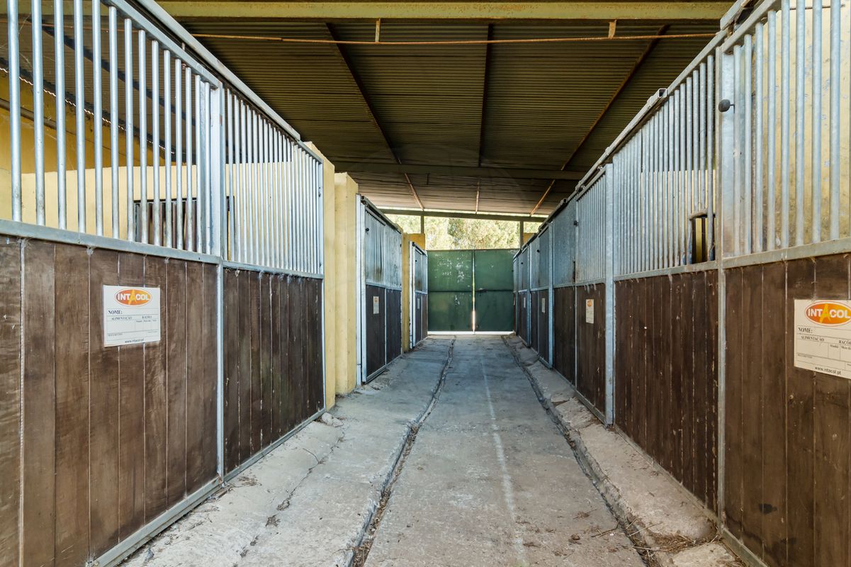 Centro Hípico : picadeiro coberto , picadeiro descoberto, 26 boxes , 2 salas de lavagem , casa de arreios , vestiário e 2 Wc