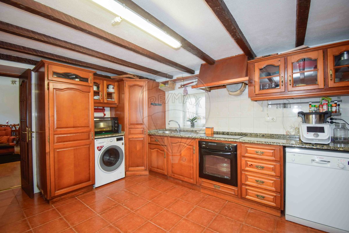 Cozinha equipada, com zonas de arrumação bem definidas, ideal para refeições em família e momentos de partilha.