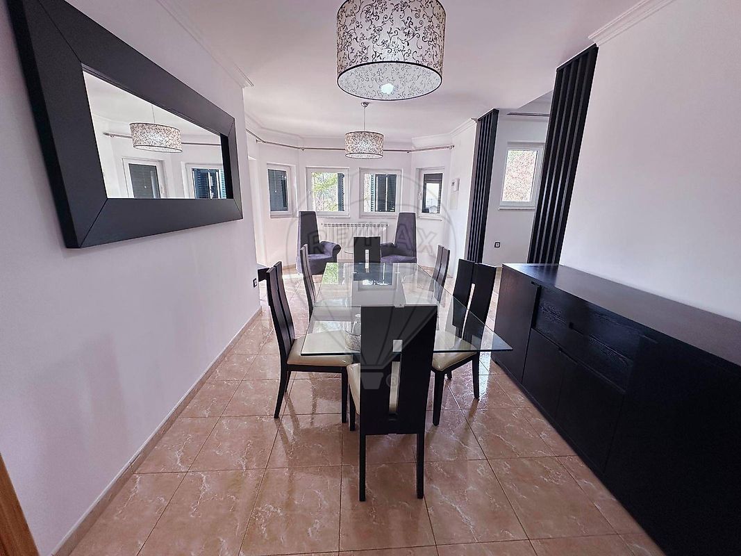 Implantada num lote de 1.430m² com 300m² de construção, revestida a capoto, é