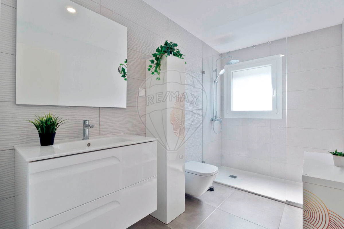 Equipada com todas as comodidades atuais, dispõe de ar condicionado, painéis solares, estores elétricos, caixilharia em PVC com vidro duplo, aspiração central e porta blindada. A garagem, de fácil acesso, inclui ainda zona de lavandaria.