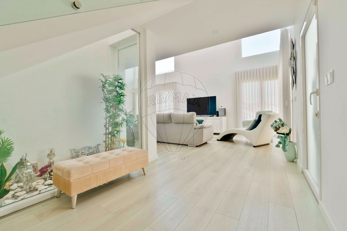 Built just one year ago, this villa with modern lines and exceptional finishes reflects a sense of contemporary refinement. The white and grey tones express elegance, sophistication, and exquisite taste. Located in a quiet residential area surrounded by family homes and away from the urban bustle, it is only 3 minutes from the main access roads (A2 and A33) and 15 km from both Lisbon city center and the International Airport.