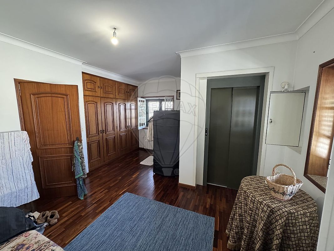 A moradia de 3 pisos conta com um elevador moderno, uma garagem para dois carros e espaco exterior para pelo menos mais dois carros.