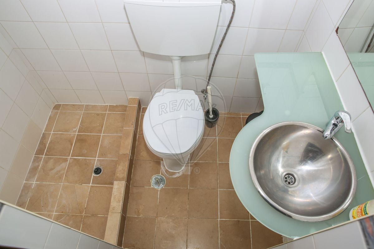 Também tem uma casa de banho, e uma garagem.