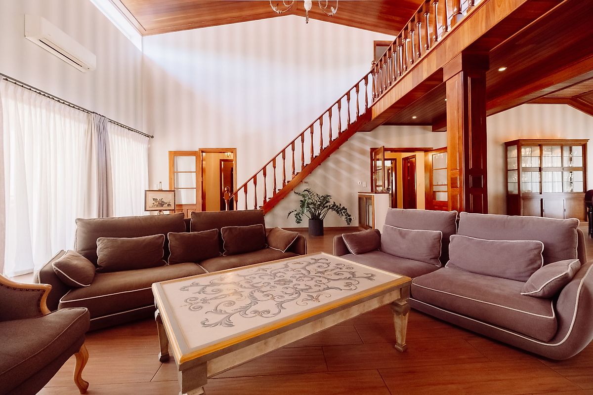 • Amplas salas com madeira nobre;