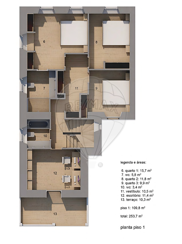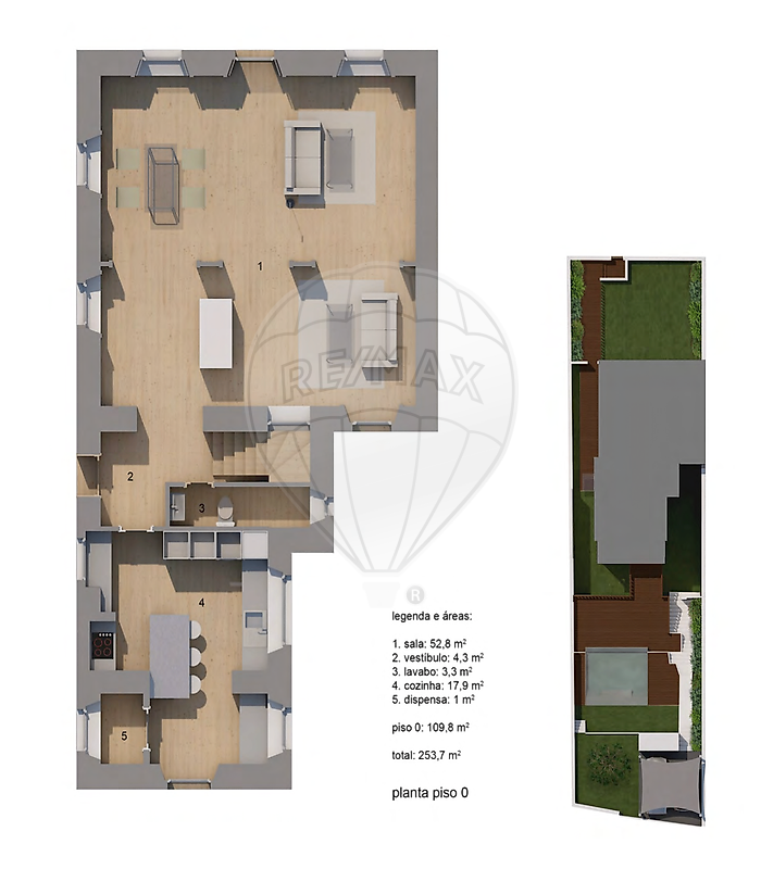 Com 253,7 m² de área bruta privativa, esta moradia distribui-se de forma harmoniosa e luminosa, beneficiando de exposição solar nascente, sul e poente.