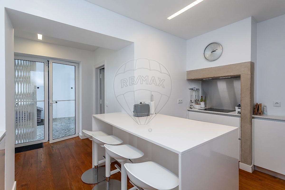 Mas o passado convive aqui em harmonia com o presente: ar condicionado, janelas duplas com corte térmico e oscilo-batentes, clarabóias que inundam o espaço de luz natural, termoacumulador e uma cozinha e casas de banho totalmente renovadas.