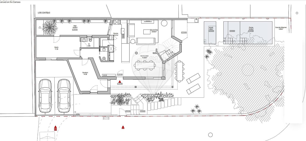 O projeto aprovado privilegia a fluidez e funcionalidade dos espaços. No piso térreo, destaca-se a ampla zona social em conceito open space, onde a cozinha se integra harmoniosamente com a sala comum com lareira, criando um ambiente elegante e convidativo. Este piso inclui ainda uma suite, escritório e lavabo social.