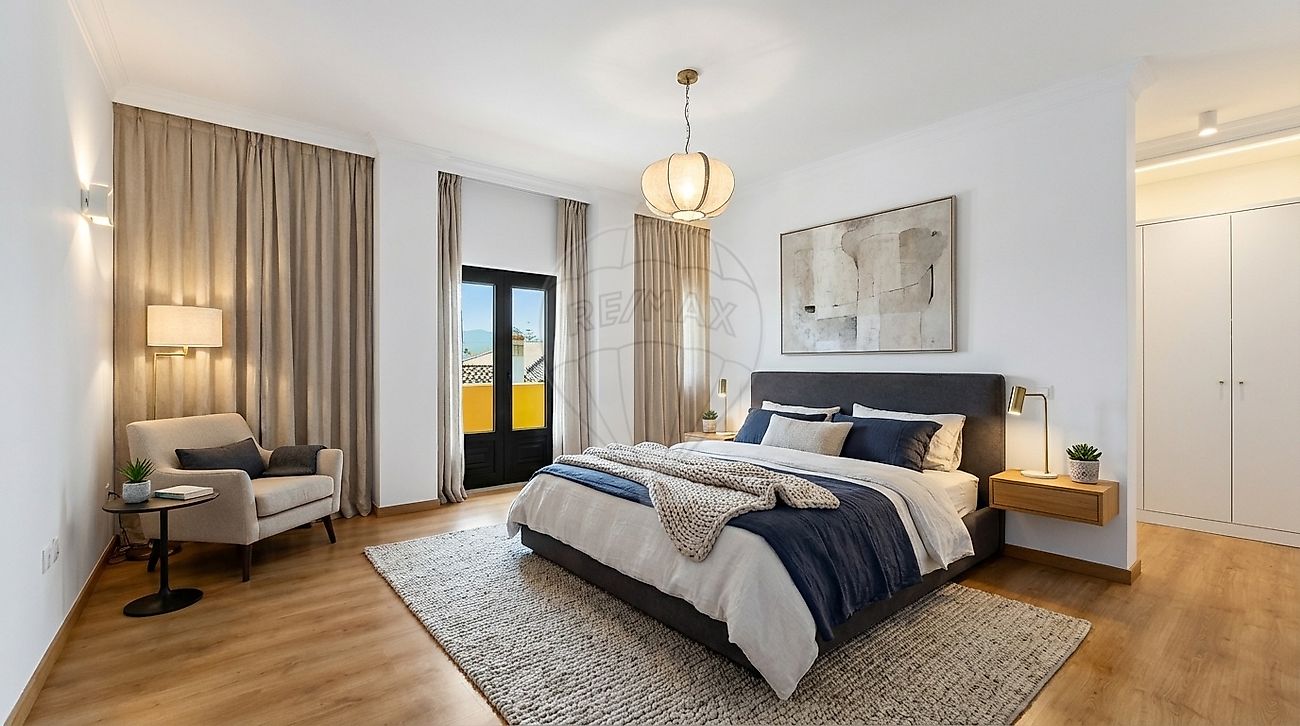 • 4 Quartos, incluindo 2 suites (1 no rés-do-chão e 1 no 1º piso), 1 escritŕio e 1 outra divisão que pode servir de quarto, atelier, quarto de bébé, etc.