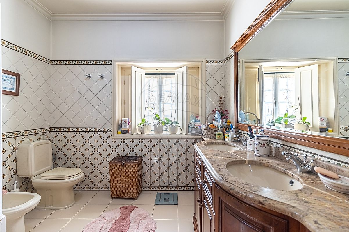 Caracterizada pela sua ótima qualidade de construção (Betão e Tijolo, com drenagem), assim como pelo estilo inspirado em Raul Lino, esta casa tem a possibilidade de se modelar para uma T9, ou especular outro aproveitamento das divisões em todo o seu enorme espaço (435m2 brutos construídos e 725m2 de Lote).