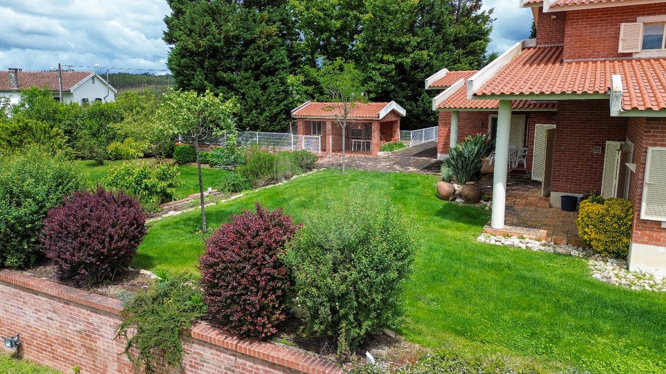 Indoors, a garage with two automated gates and capacity for three vehicles, a small WC, a living room area with fireplace, and two large storage spaces. Fully equipped kitchen with a stunning view of Serra do Açor facing south and of Serra da Estrela facing east. All the bedrooms are bedroom suites, one of which with a closet. There is also a laundry room to help with the domestic chores. The windows are double glazed and have shutters, ensuring privacy and safety. An indoor garden adds a touch of freshness and tranquility to the house. A central heating system keeps the house warm in the colder days.