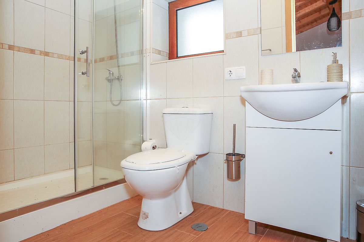 Na casa principal, o calor da lareira nos dias frios e o conforto do aquecimento central acompanham uma vivência plena: uma cozinha, uma sala de jantar, uma sala de estar acolhedora, uma suíte, mais dois quartos e uma casa de banho.