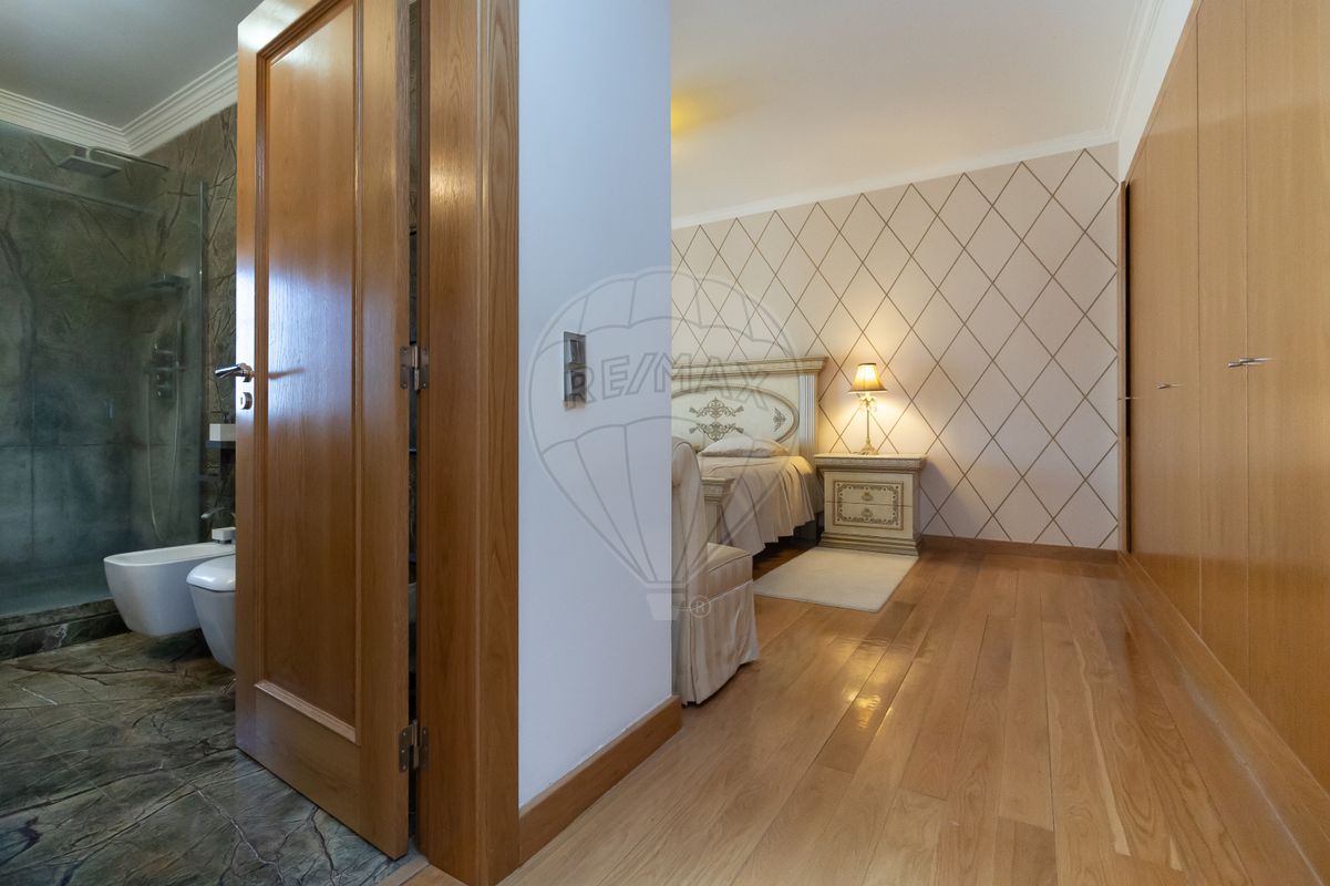 - Os quartos, são caracterizados pela sua dimensão imponente, todos com 40m2 e, pelas suas casas de banho, onde o proprietário e o arquitecto fizeram questão de personalizar cada uma delas, com o seu toque pessoal, revestindo-as com mármore de diversas regiões do mundo, tais como, mármore verde Índico, mármore de Angola, rosa de Monção e azul Argentina.