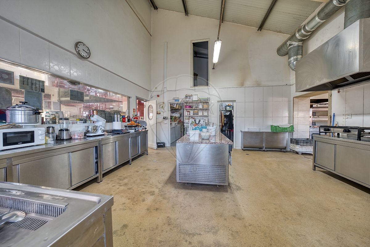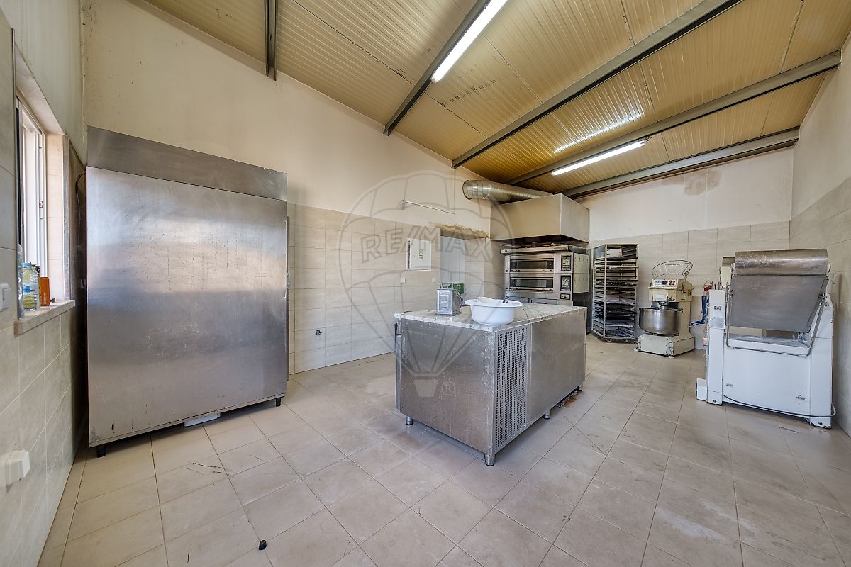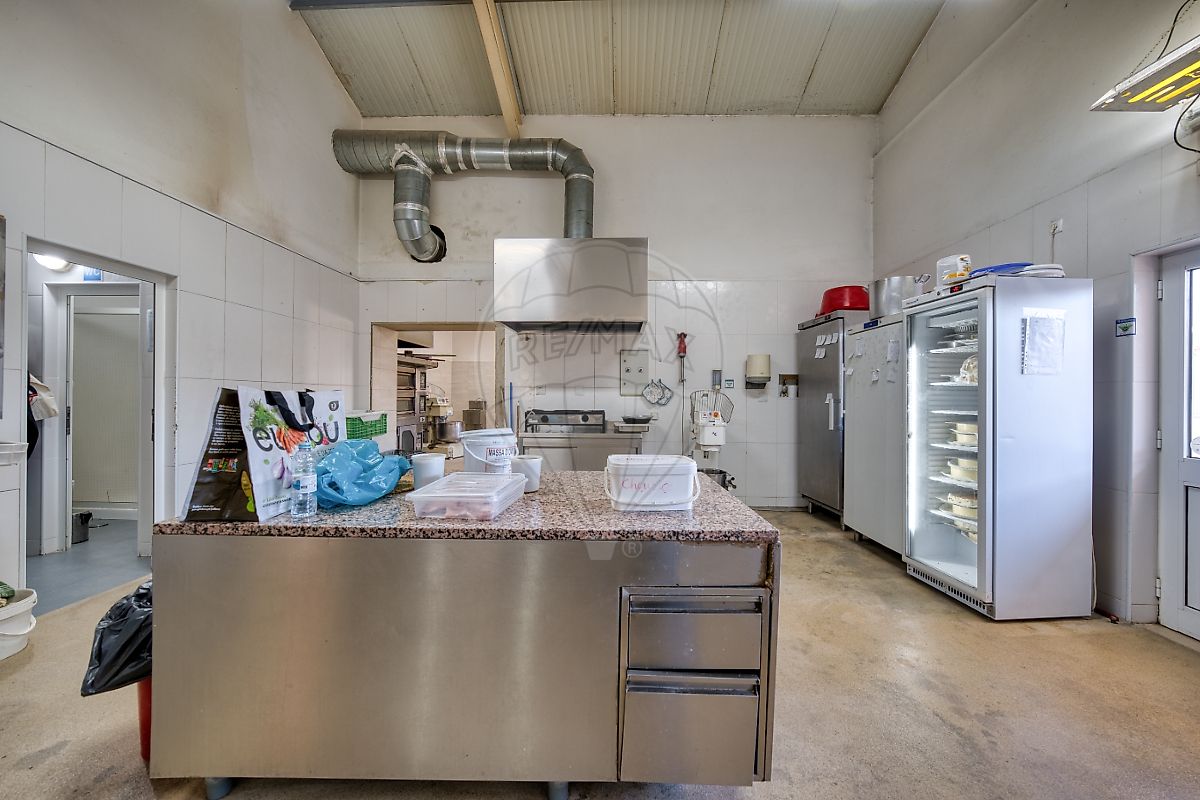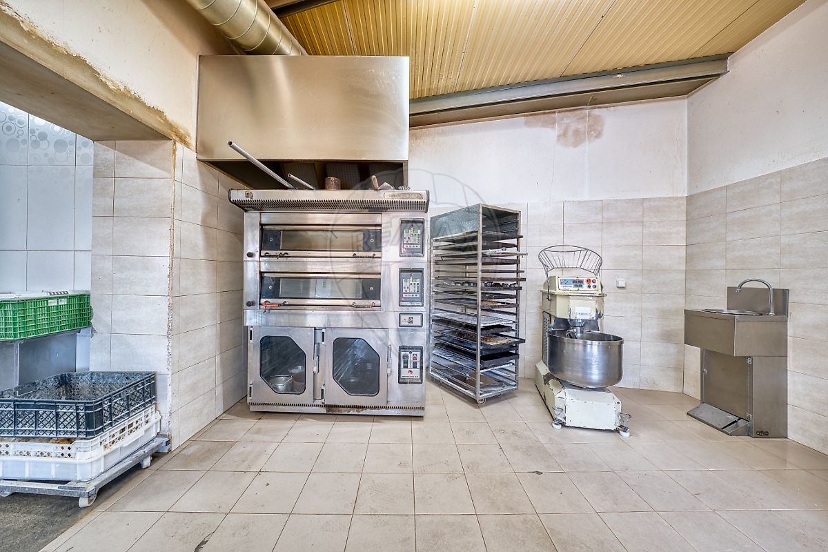 Cozinha e Fábrica: Área de fabrico separada, equipada para produção de pão e pastelaria em grande escala.