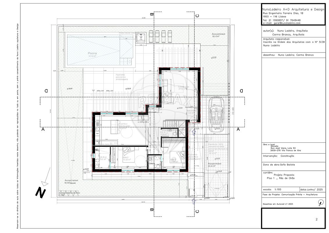 implantação de habitação de 250m2, distribuídos por cave, rés-do-chão e