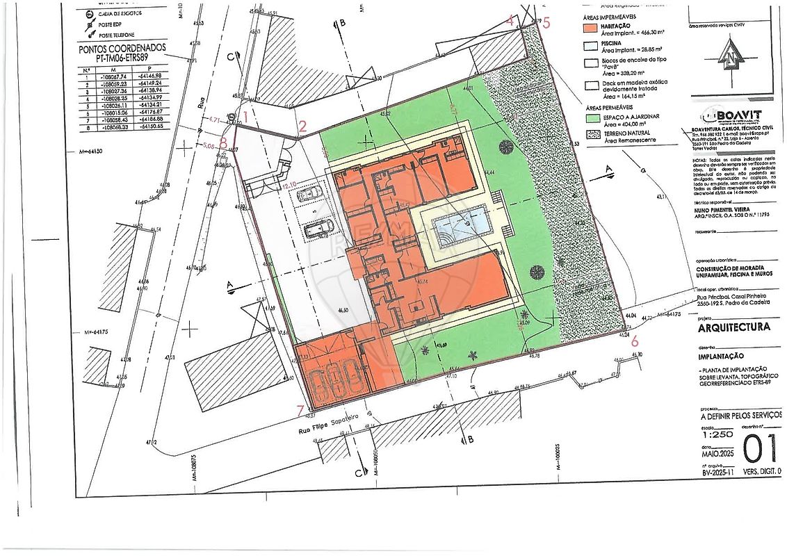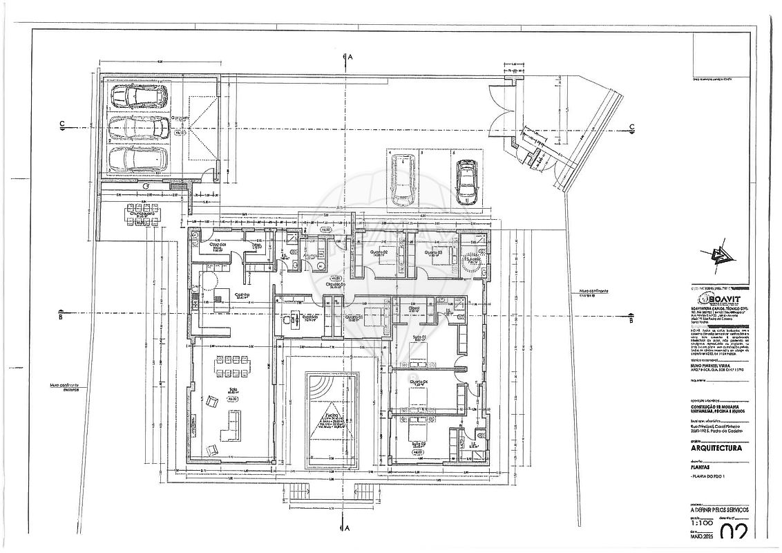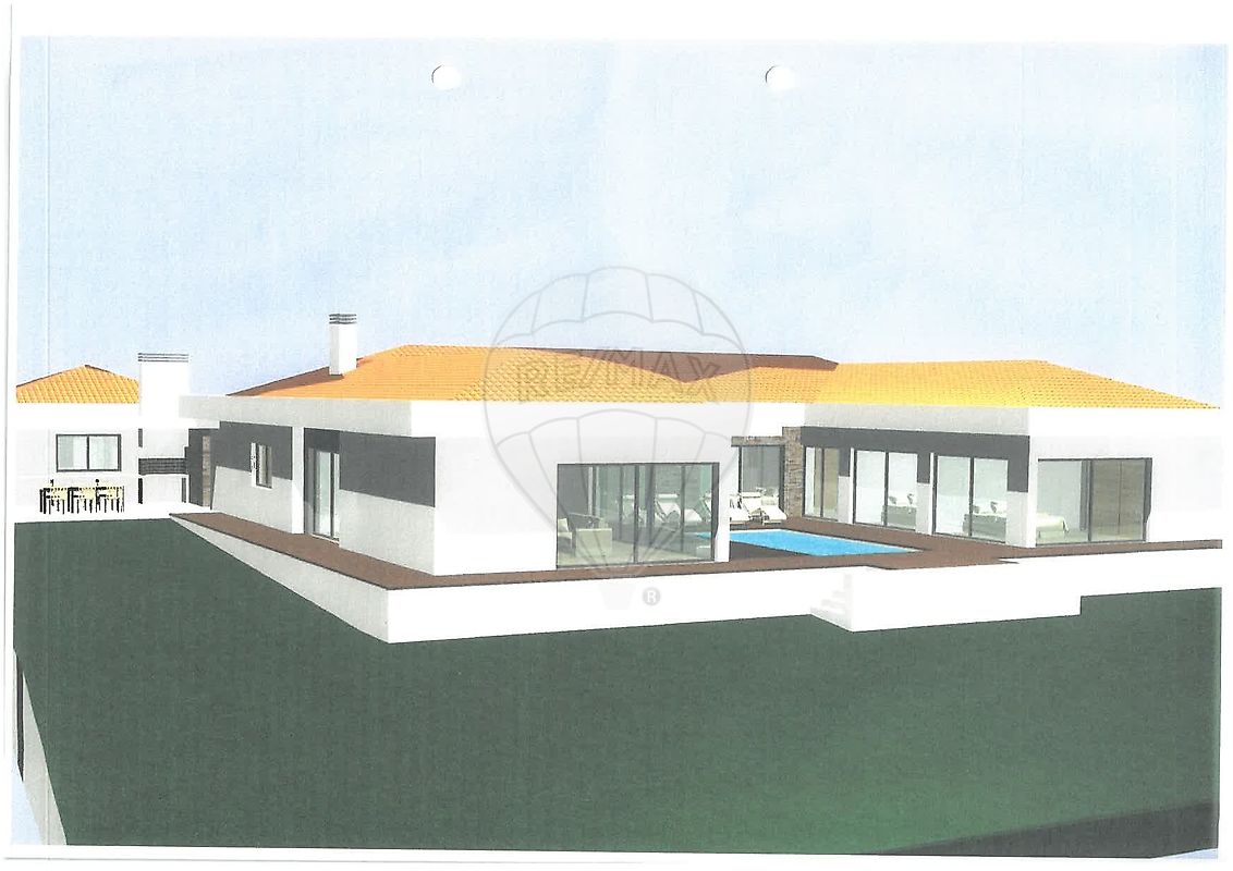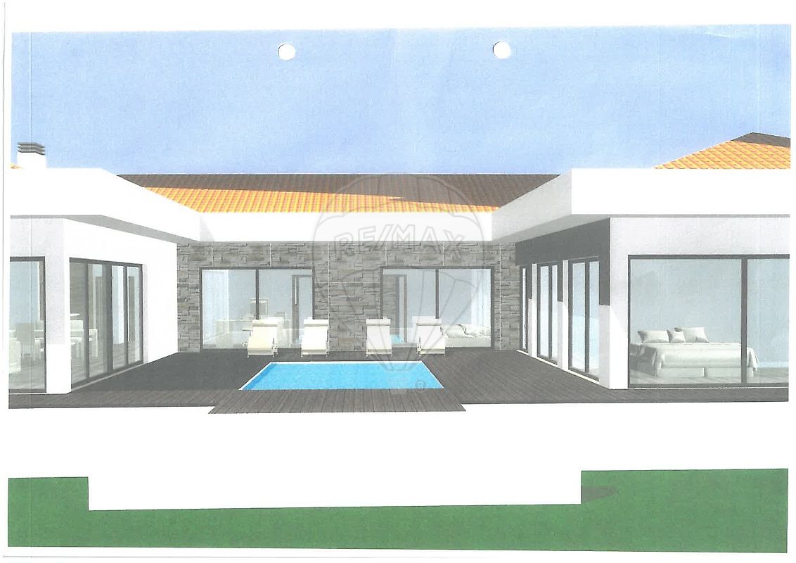 Lote Plano, com 1.900m2, PROJECTO APROVADO para moradia TÉRREA, Contemporânea, com formato em U, PISCINA ao Centro e GARAGEM para 3 carros.