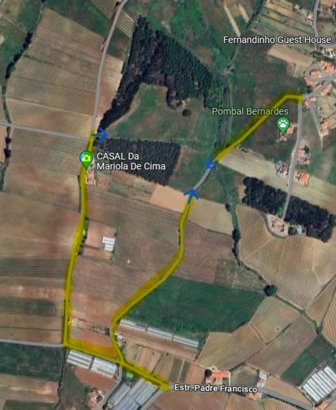ACESSOS: 3 (a oeste, na estrada que liga ao Casal da Mariola de Cima, e a sul, num caminho à anterior e ligando ambas à estrada do Padre Francisco, e a leste, num caminho que liga a norte à Rua do Pampilho, em Fernandinho)